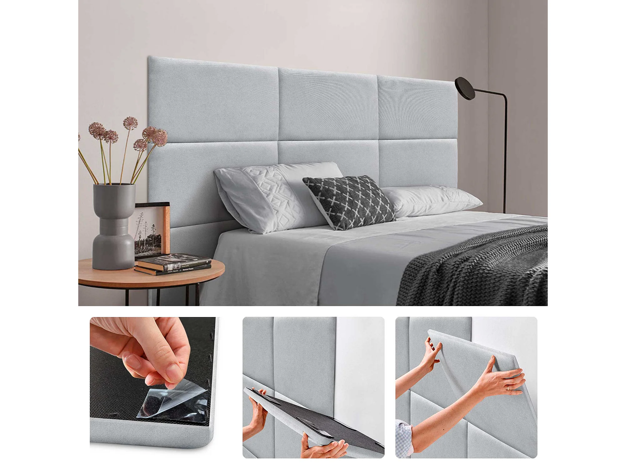 DHOME Lot de 8 Panneaux Rembourrés en Tissu Aqualine Autocollants pour Mur Acoustiques Absorbants Protection contre les Choc (Gris clair, 50x40cm, x8)