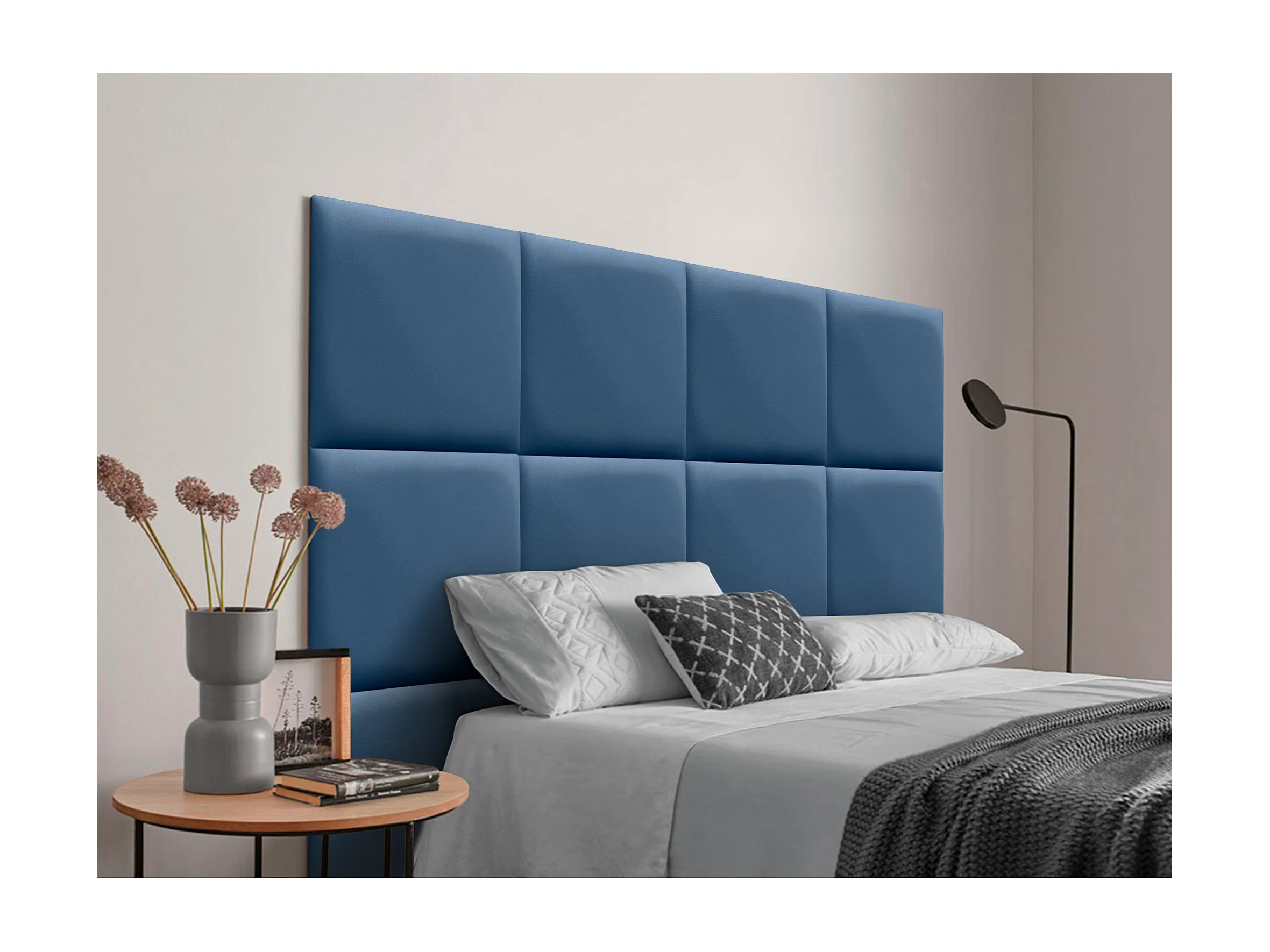 DHOME Tête de lit capitonnée en similicuir de qualité supérieure composée de panneaux autocollants interchangeables (bleu, 135 cm)