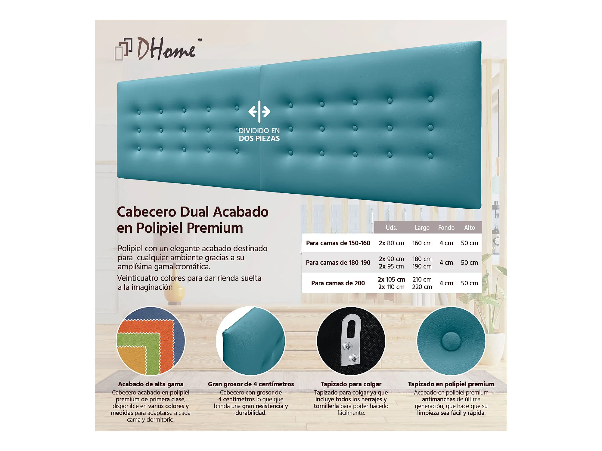 DHOME Tête de Lit en Similicuir avec 3 Rangées de Boutons Tête de Lit Rembourrée de Luxe (Turquoise, 210cm (2 pièces))