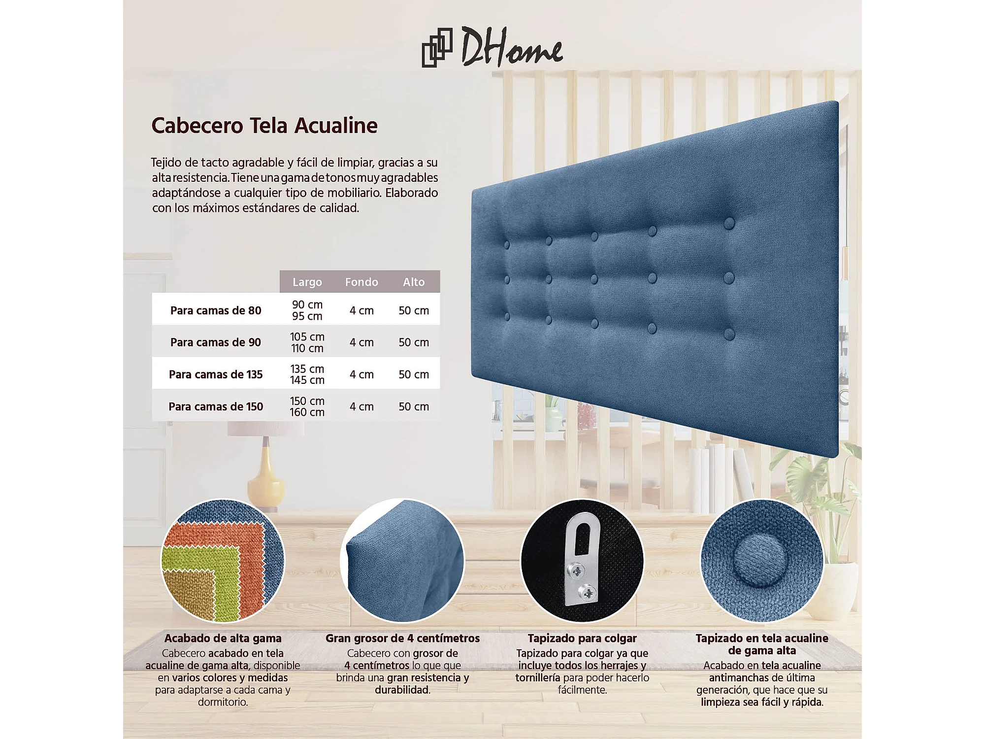DHOME Tête de Lit en Tissu ACUALINE avec 3 Rangées de Boutons Tête de Lit Capitonnée de Luxe (Bleu, 105cm)