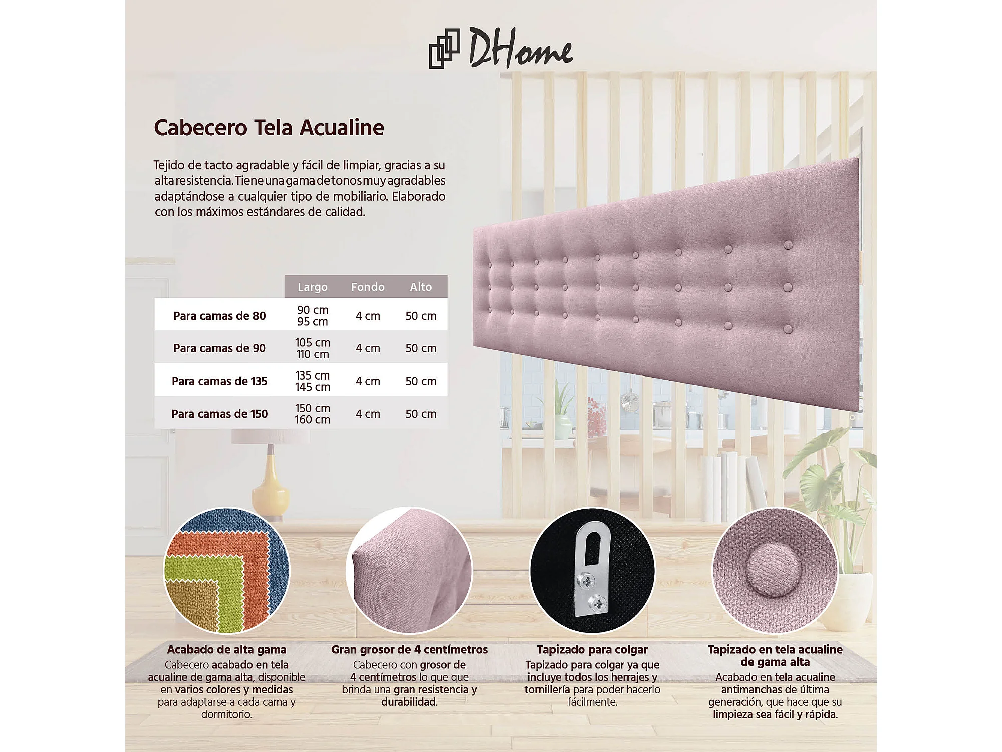 DHOME Tête de Lit en Tissu ACUALINE avec 3 Rangées de Boutons Tête de Lit Capitonnée de Luxe (Rose, 145cm)