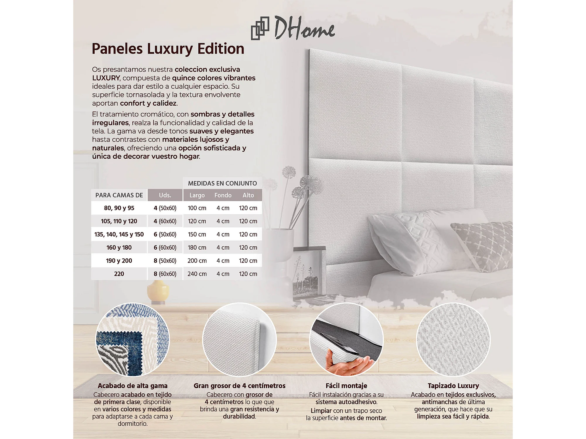 DHOME Tête de Lit Rembourrée Composée de Panneaux Autoadhésifs Interchangeables Série Luxury Edition Lit de Luxe Chambre (Silver Nacar, 145cm)