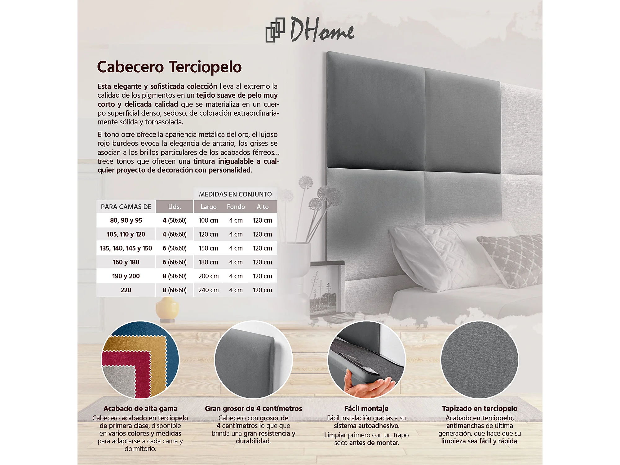 DHOME Tête delit Tapissée en velours de qualité supérieure composée de panneaux autocollants interchangeables pour chambre (gris cendré, 120 cm)