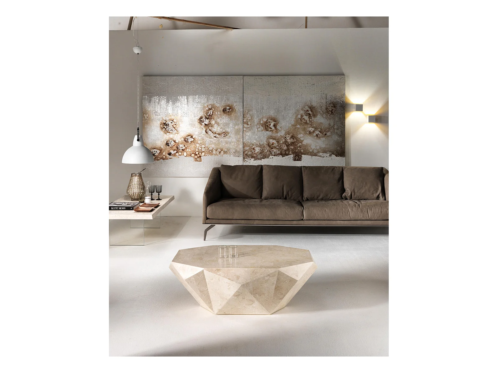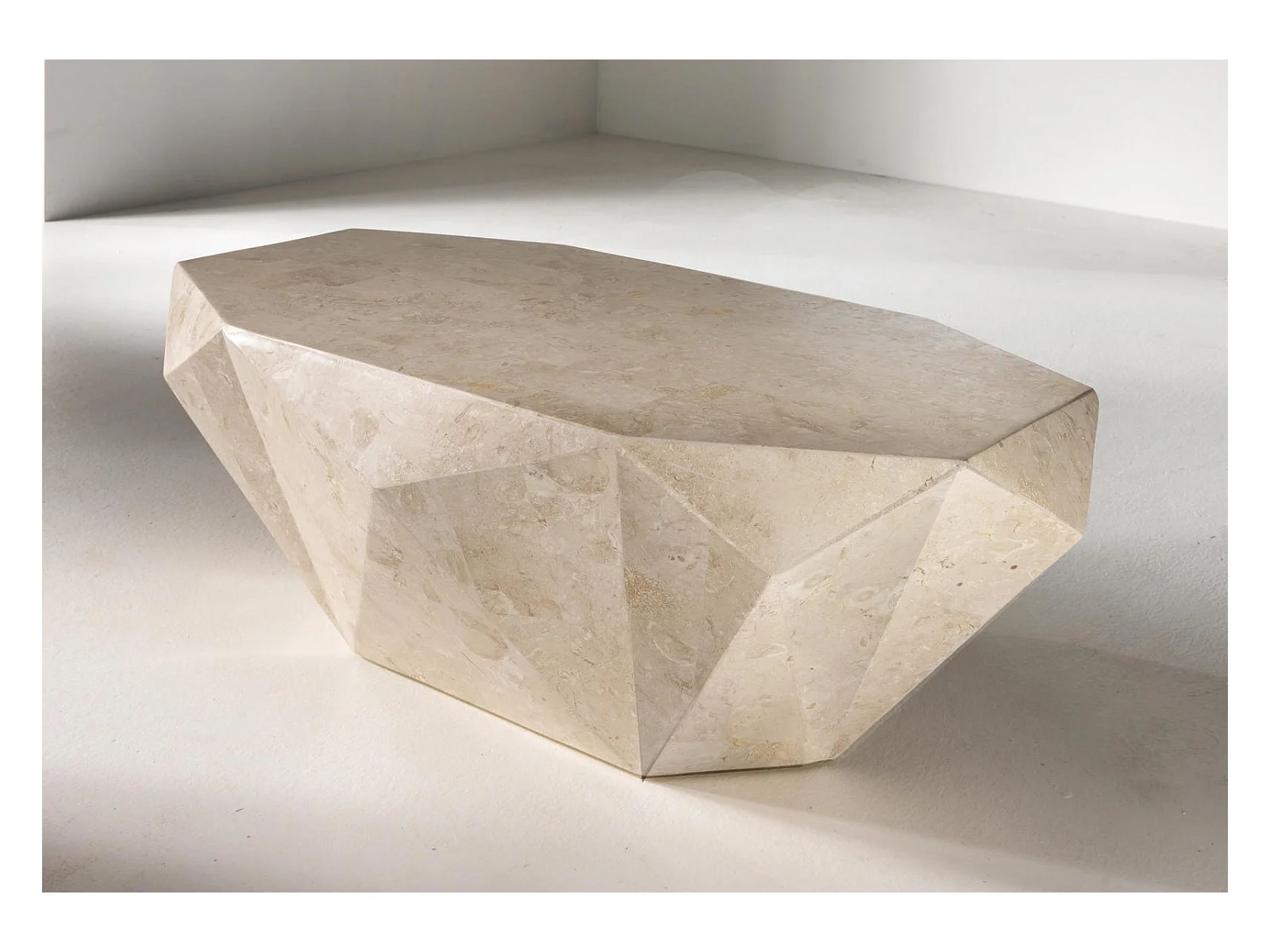 Diamond medium Table basse (120 x 70 x 40h) en pierre fossile beige