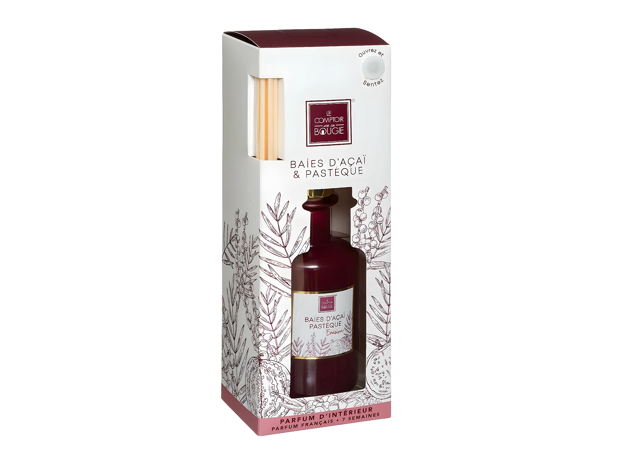 Diffuseur de parfum Baies d'Acai et Pastèque 200 ml avec 8 Bâtonnets en rotin