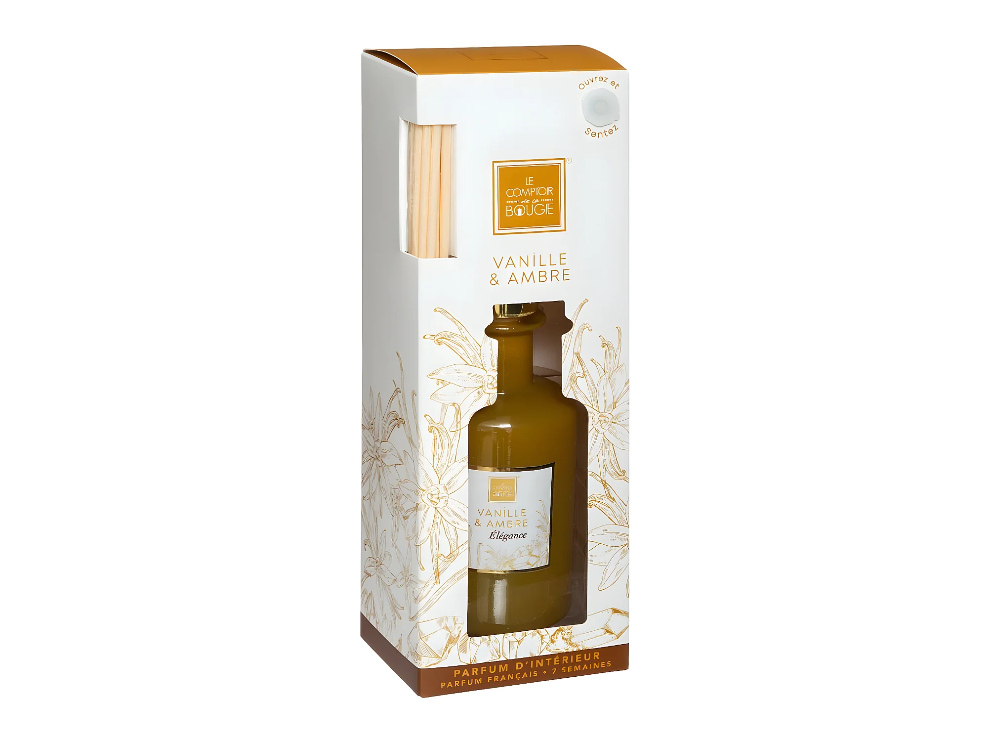 Diffuseur de parfum Vanille et Ambre 200 ml avec 8 Bâtonnets en rotin