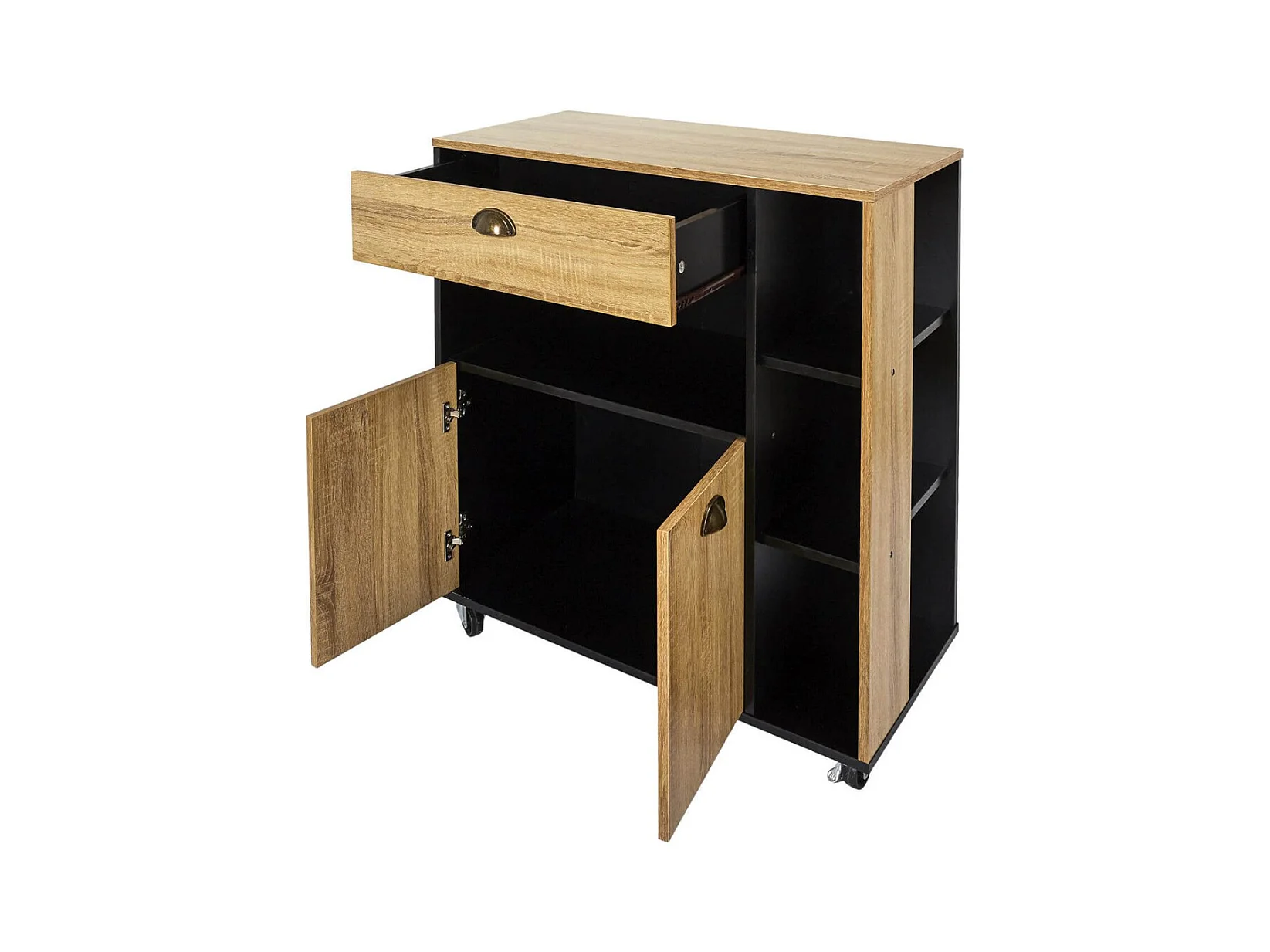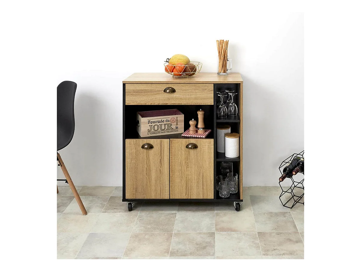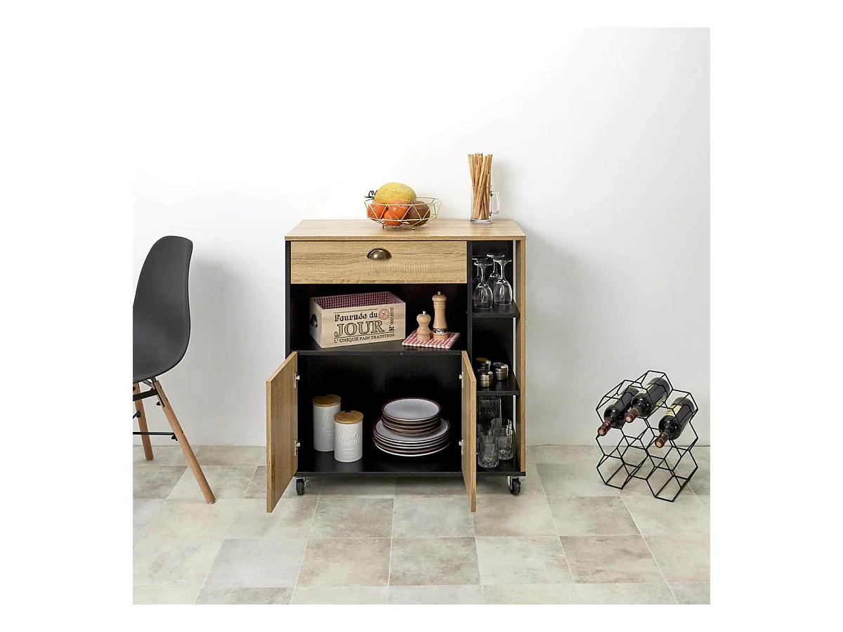 Désserte, meuble de rangement design pour cuisine ou salle à manger TROLLEY. Coloris bois et noir