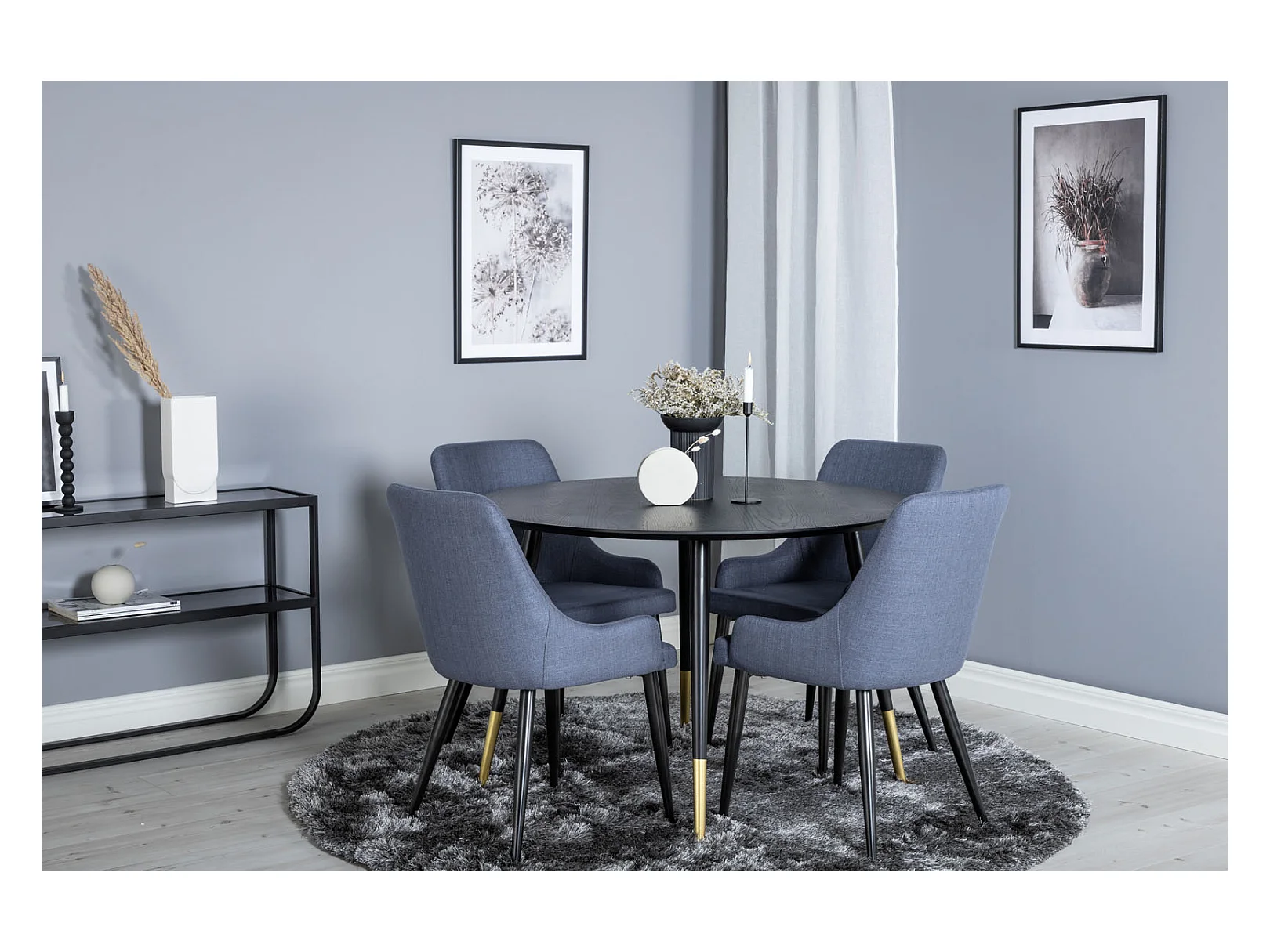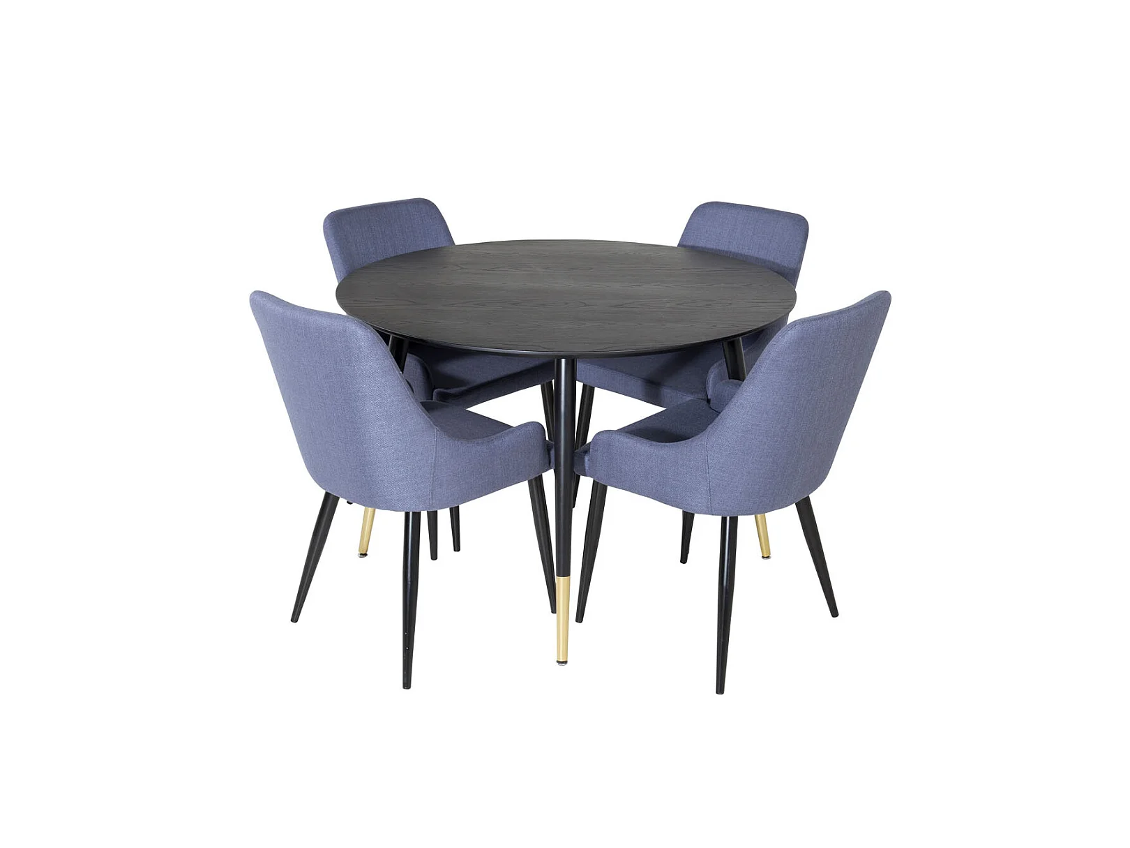 DippØ115BLBR ensemble table, table noir et 4 Plaza chaises bleu, noir.