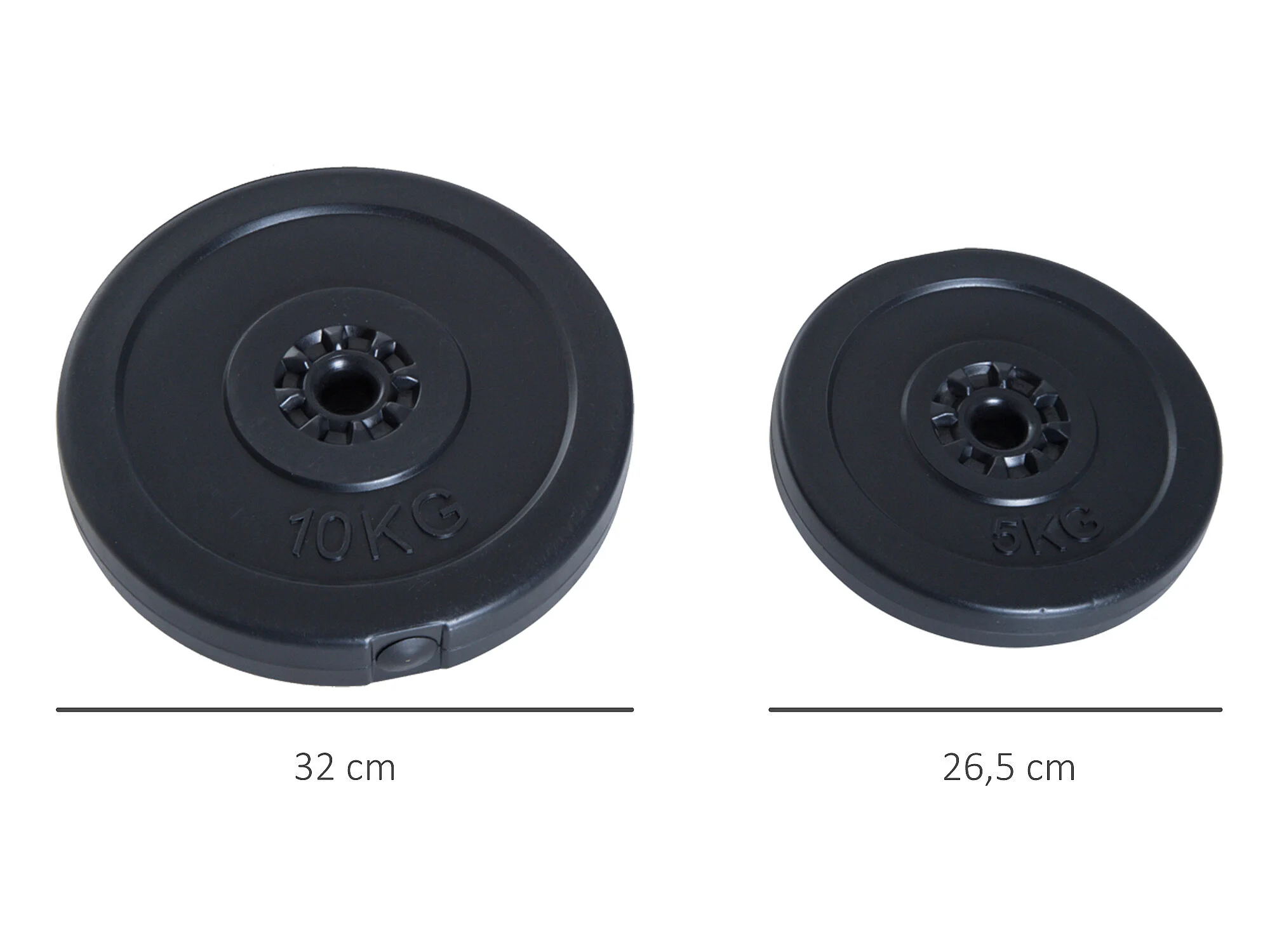 Disques de poids - lot de 4 disques d'haltère - ensemble de poids 5 Kg et 10 Kg - poids total 30 Kg - entraînement musculaire & haltérophilie - HDPE noir