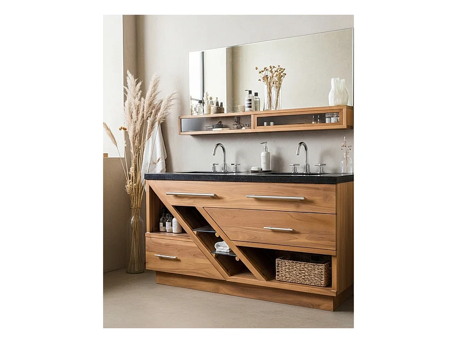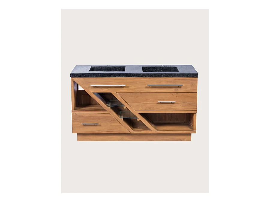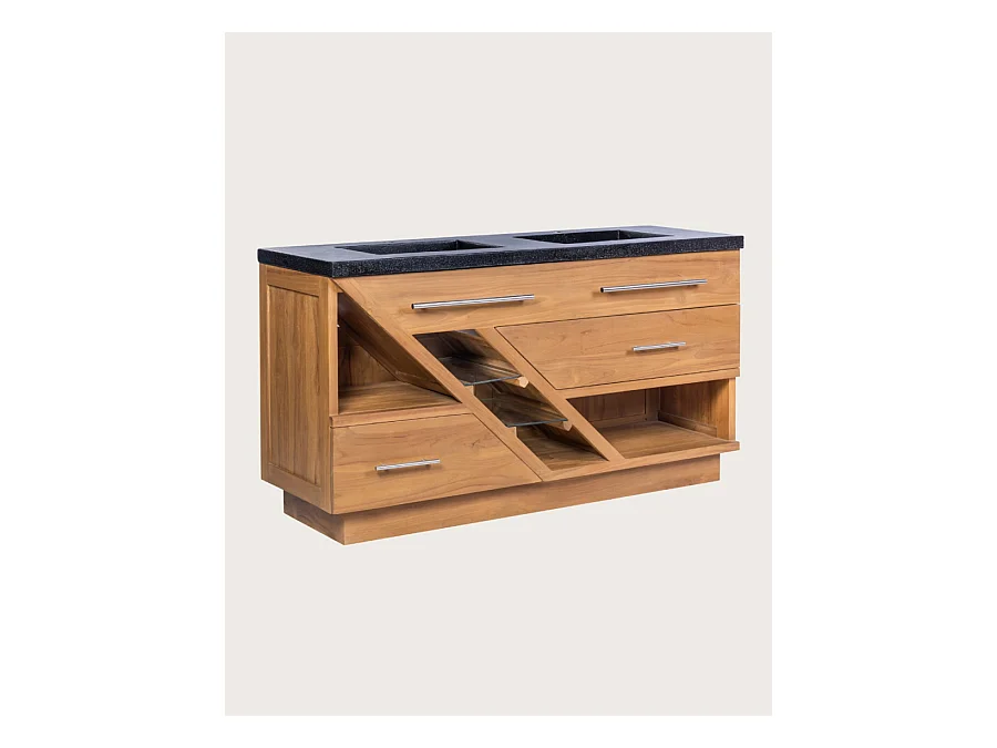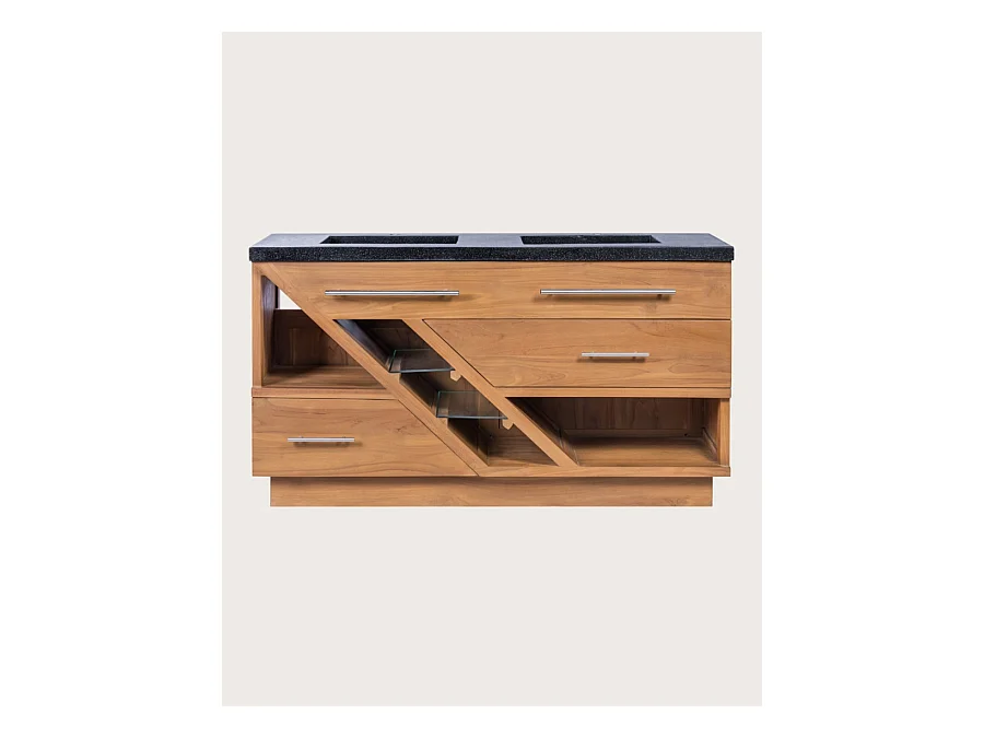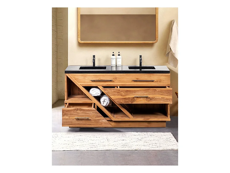 Diva - Meuble salle de bain en teck et marbre terrazzo noir 145 cm