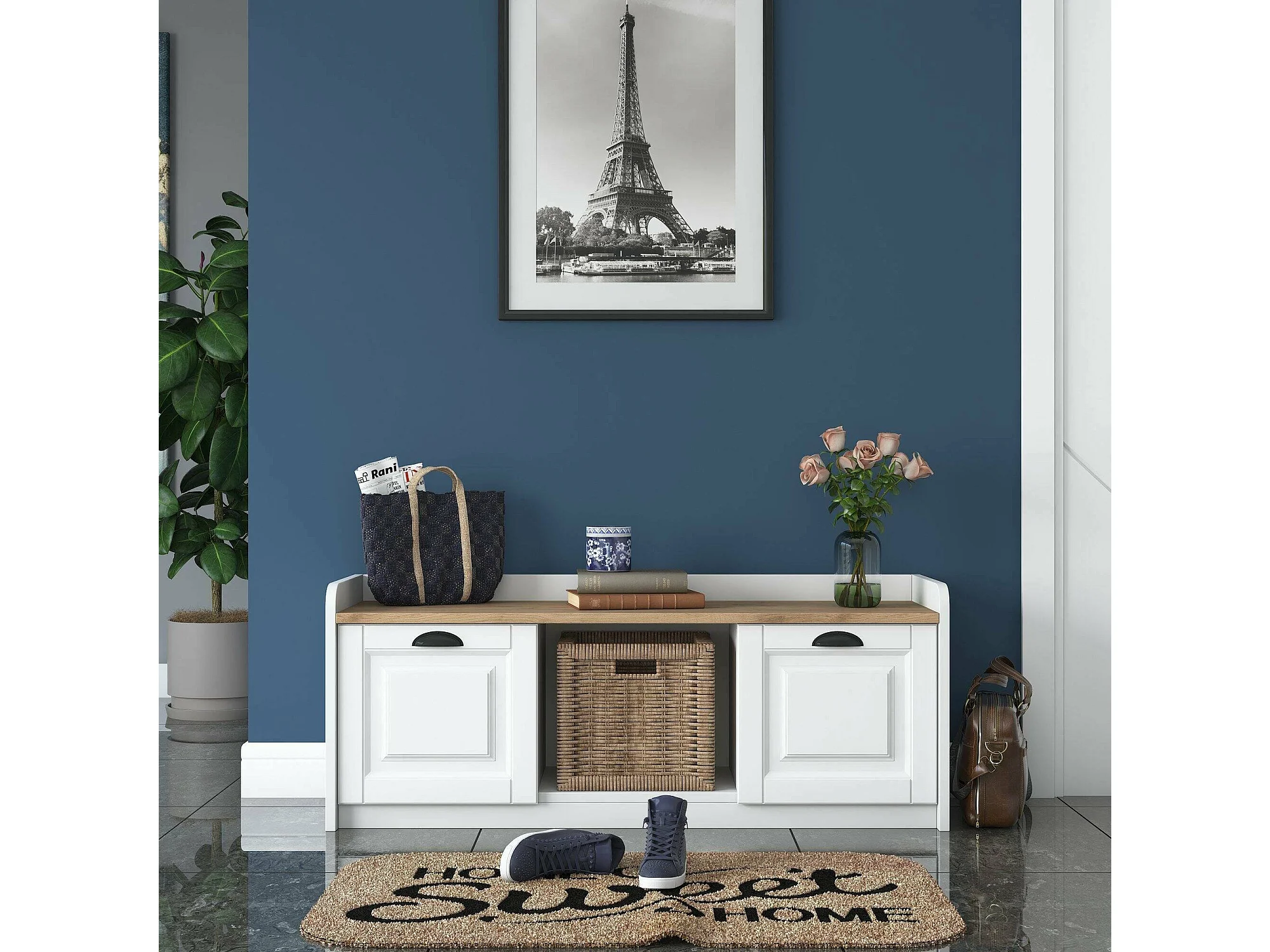 Meuble à chaussures Egay, 2 étagères, 40x120x45h cm Blanc, Rangement à chaussures
