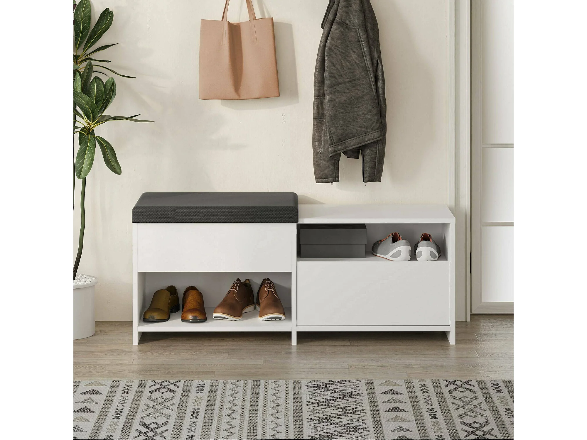 Étagère à chaussures Nuri, un niveau, 40.5x120.3x51h cm blanc, meuble à chaussures