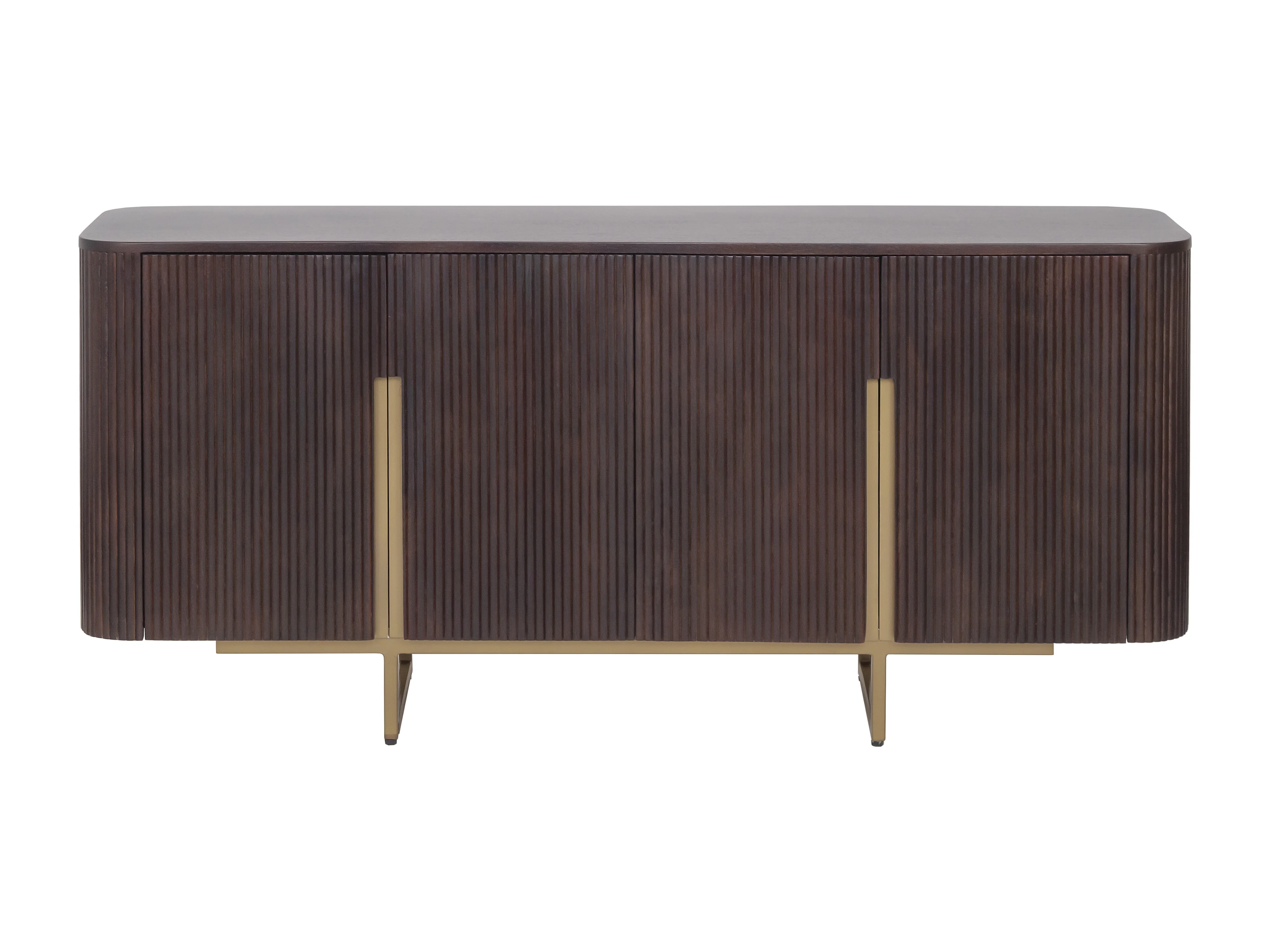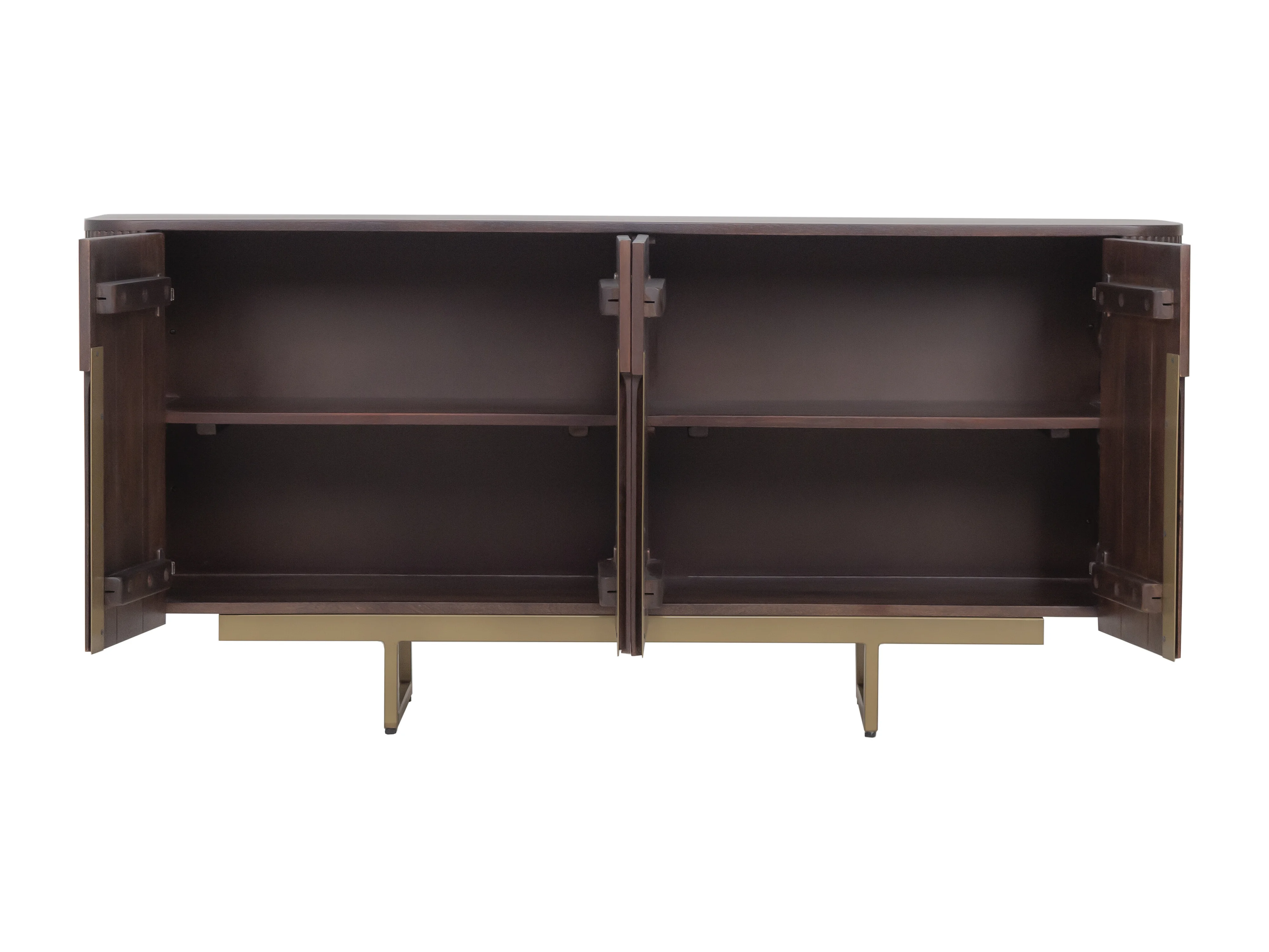 Buffet avec 4 portes en bois de manguier et métal doré - Naturel foncé - DOLIYA de Maison Céphy
