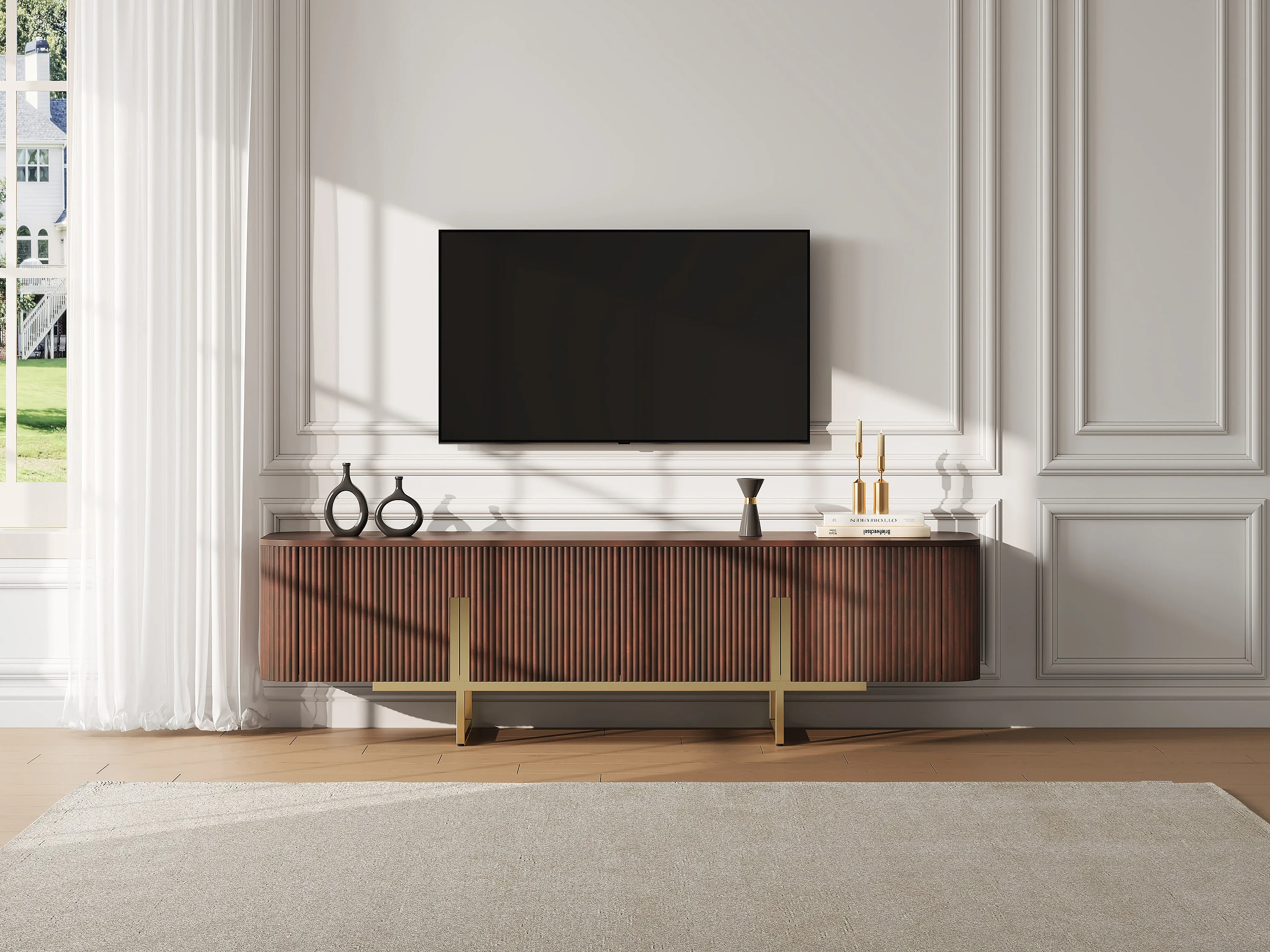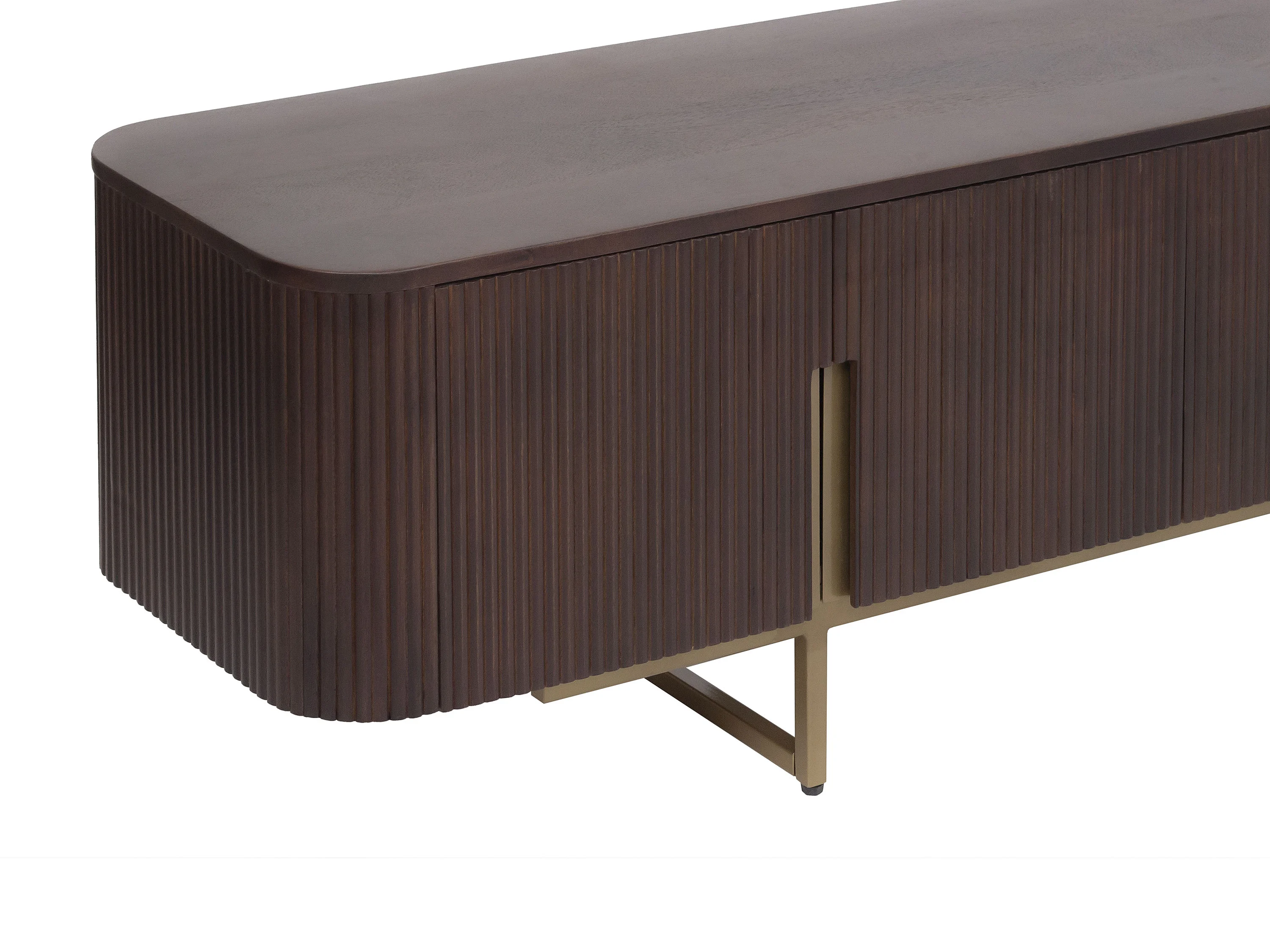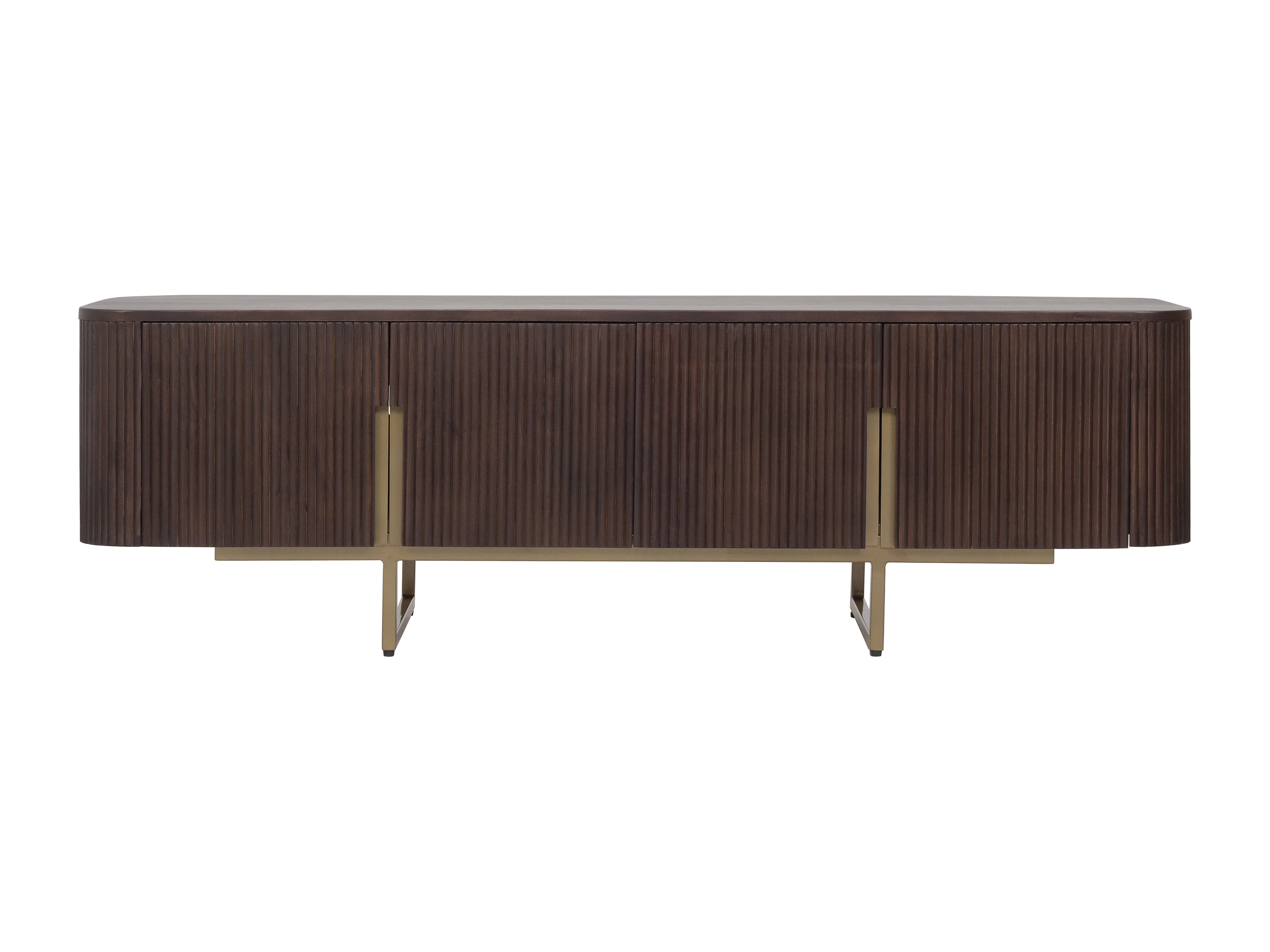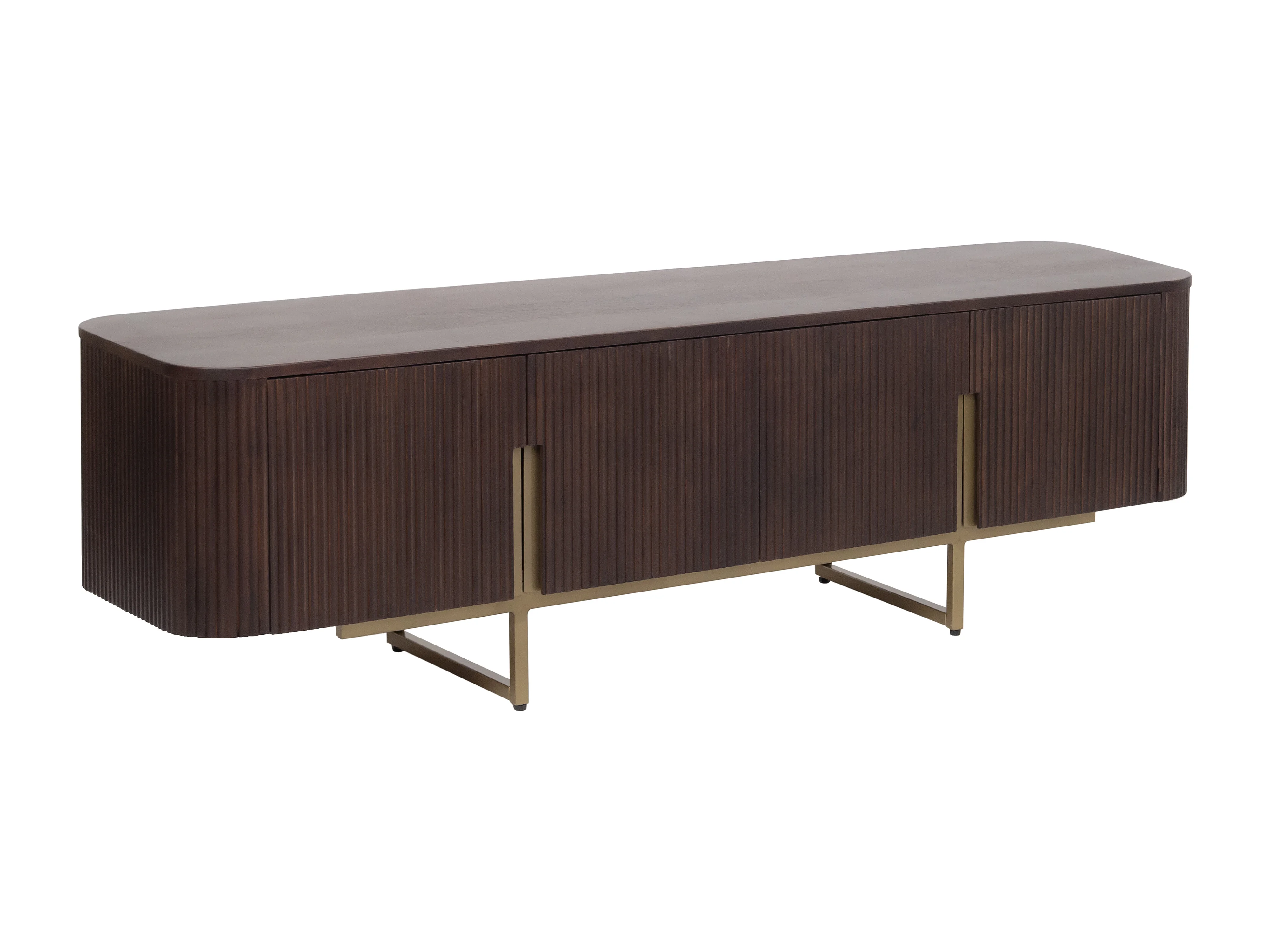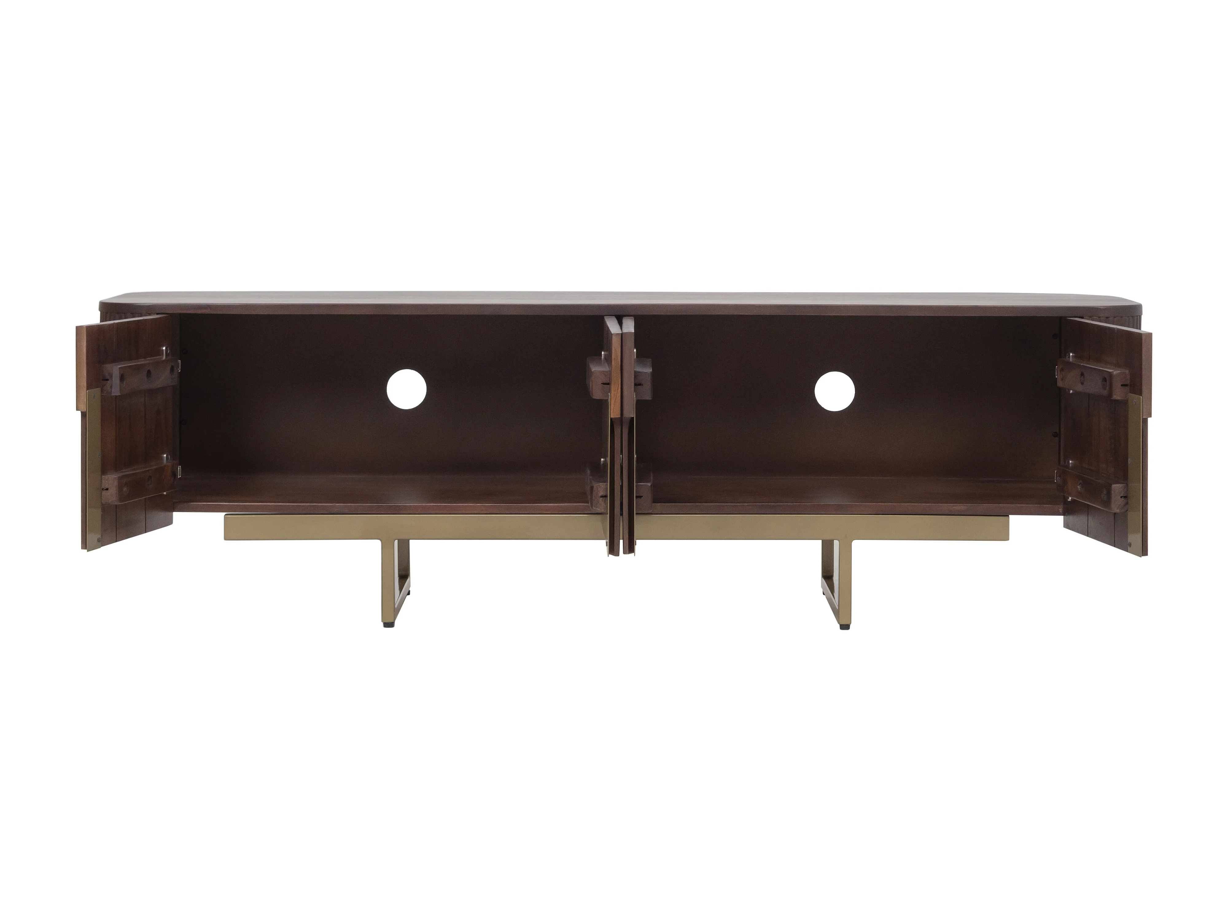 Meuble TV avec 4 portes en bois de manguier et métal doré - Naturel foncé - DOLIYA de Maison Céphy