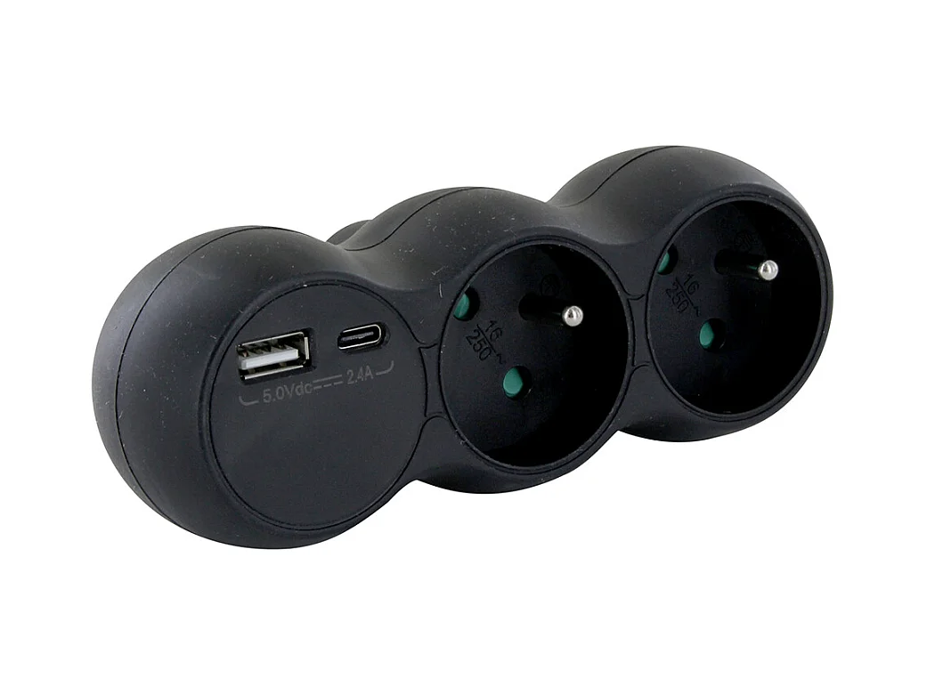 Domino 2x16A + USB-A/C - Noir - Chacon