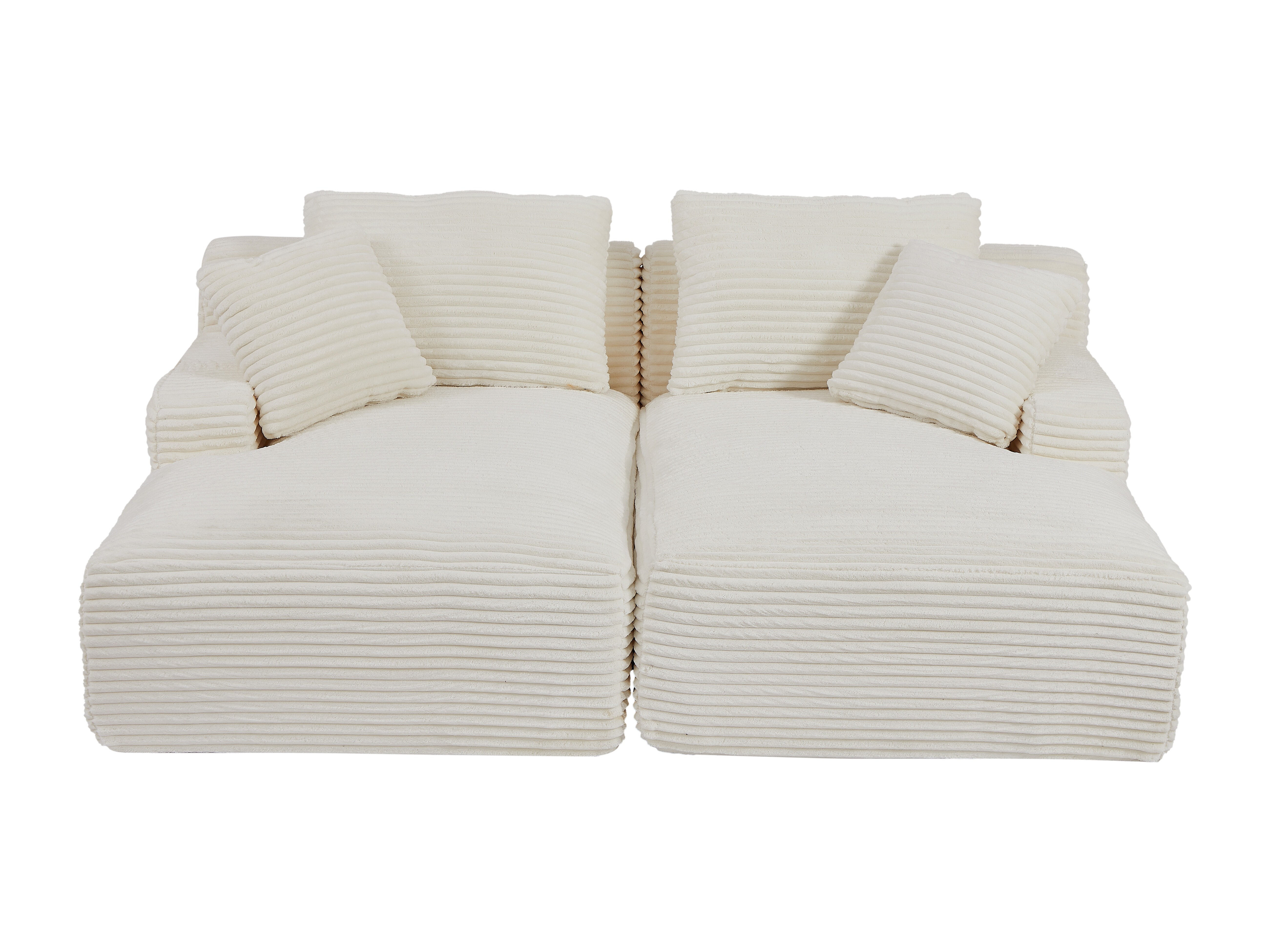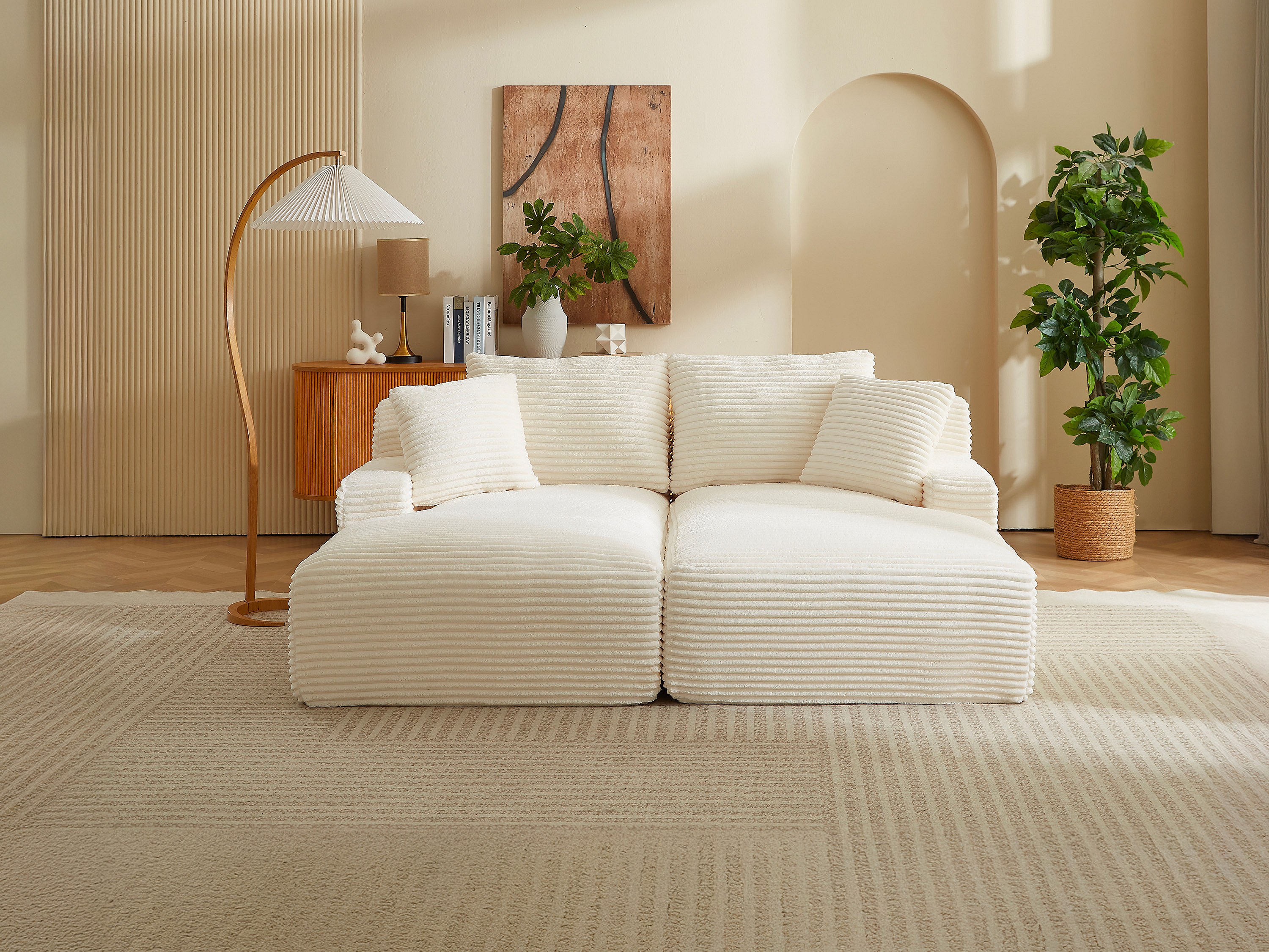 Canapé 3 places confort assise profonde en velours côtelé grosses côtes beige DONILIA