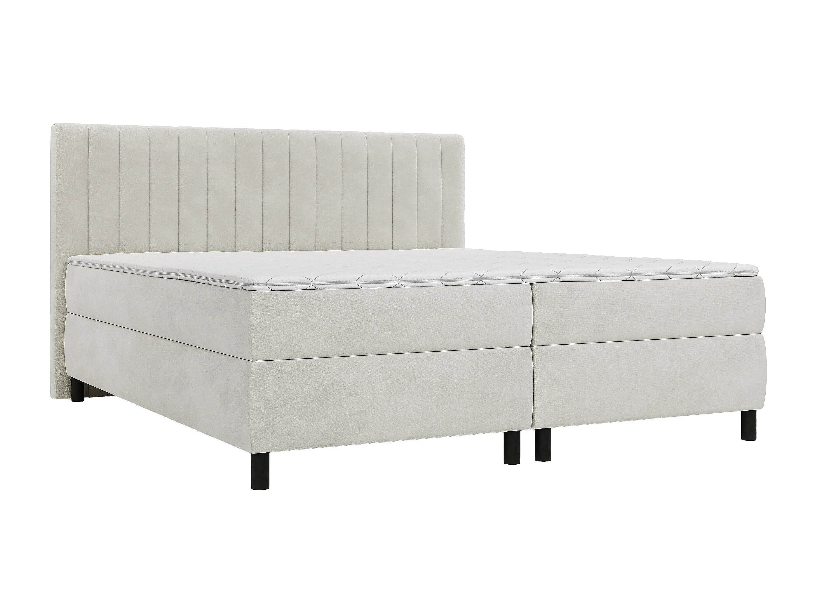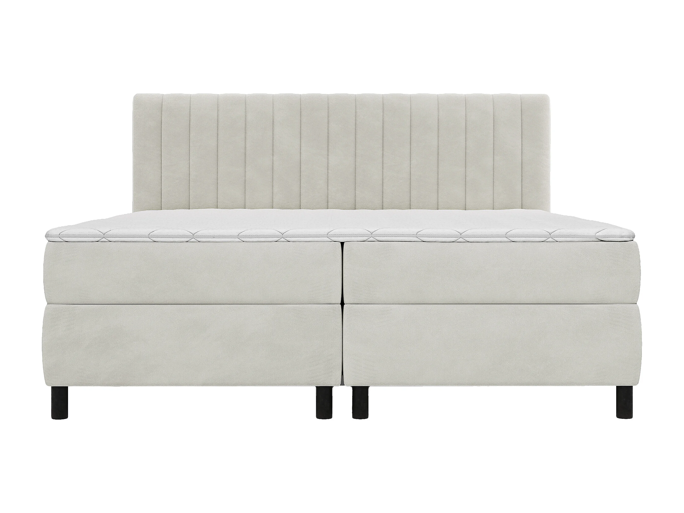 Ensemble complet boxspring tête de lit coutures verticales + sommier + matelas + surmatelas - 2 x 90 x 200 cm - Velours - Gris clair - DONISI de PALACIO
