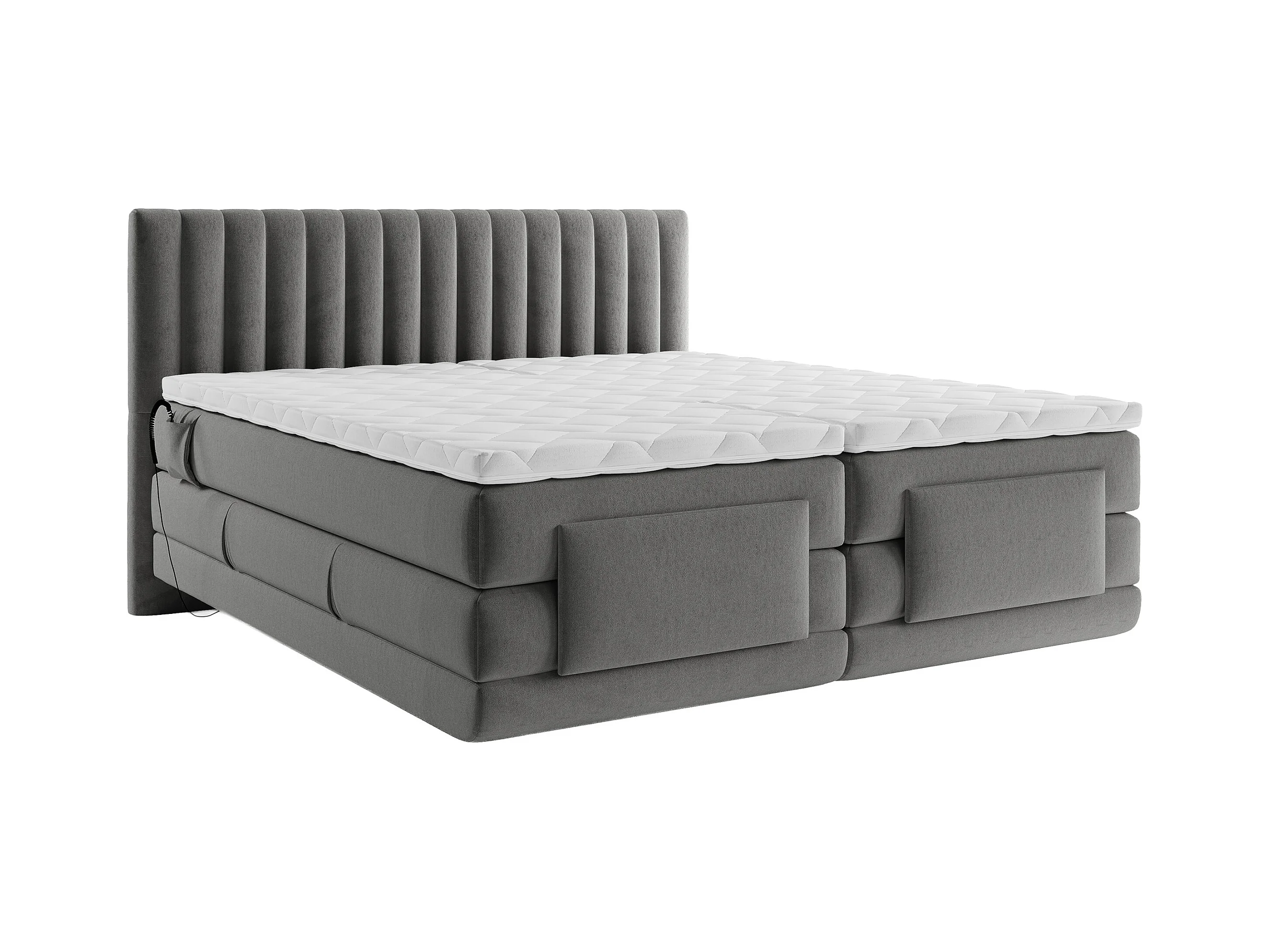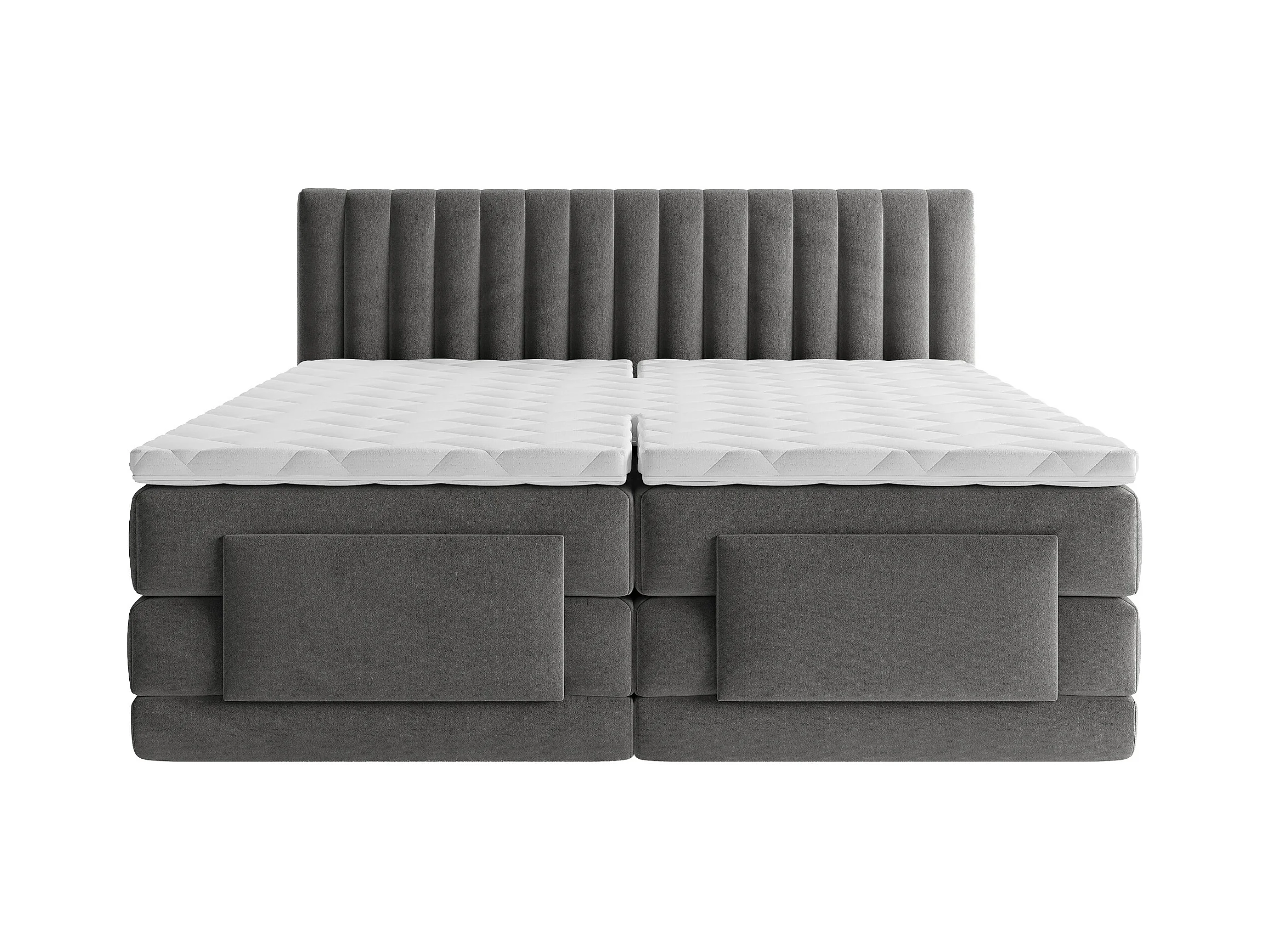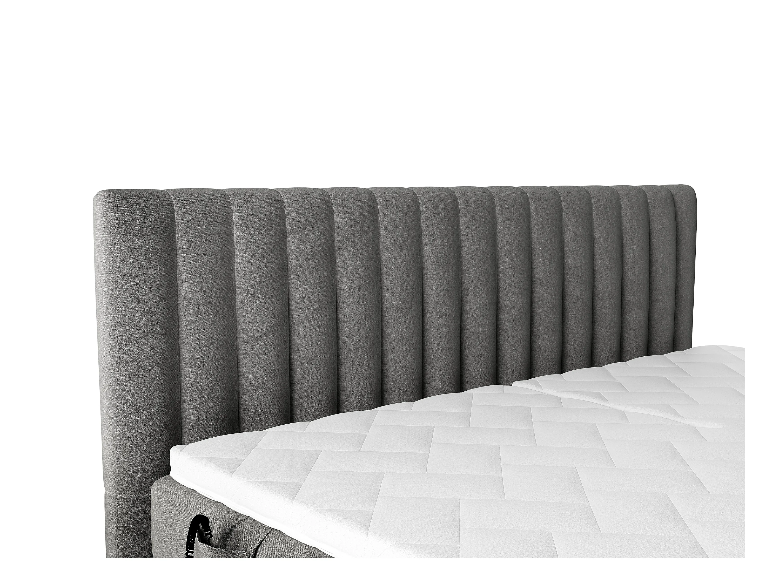 Ensemble complet boxspring tête de lit coutures verticales + sommiers relaxation électrique + matelas + surmatelas - 2 x 90 x 200 cm - Velours - Anthracite - DONISI de PALACIO