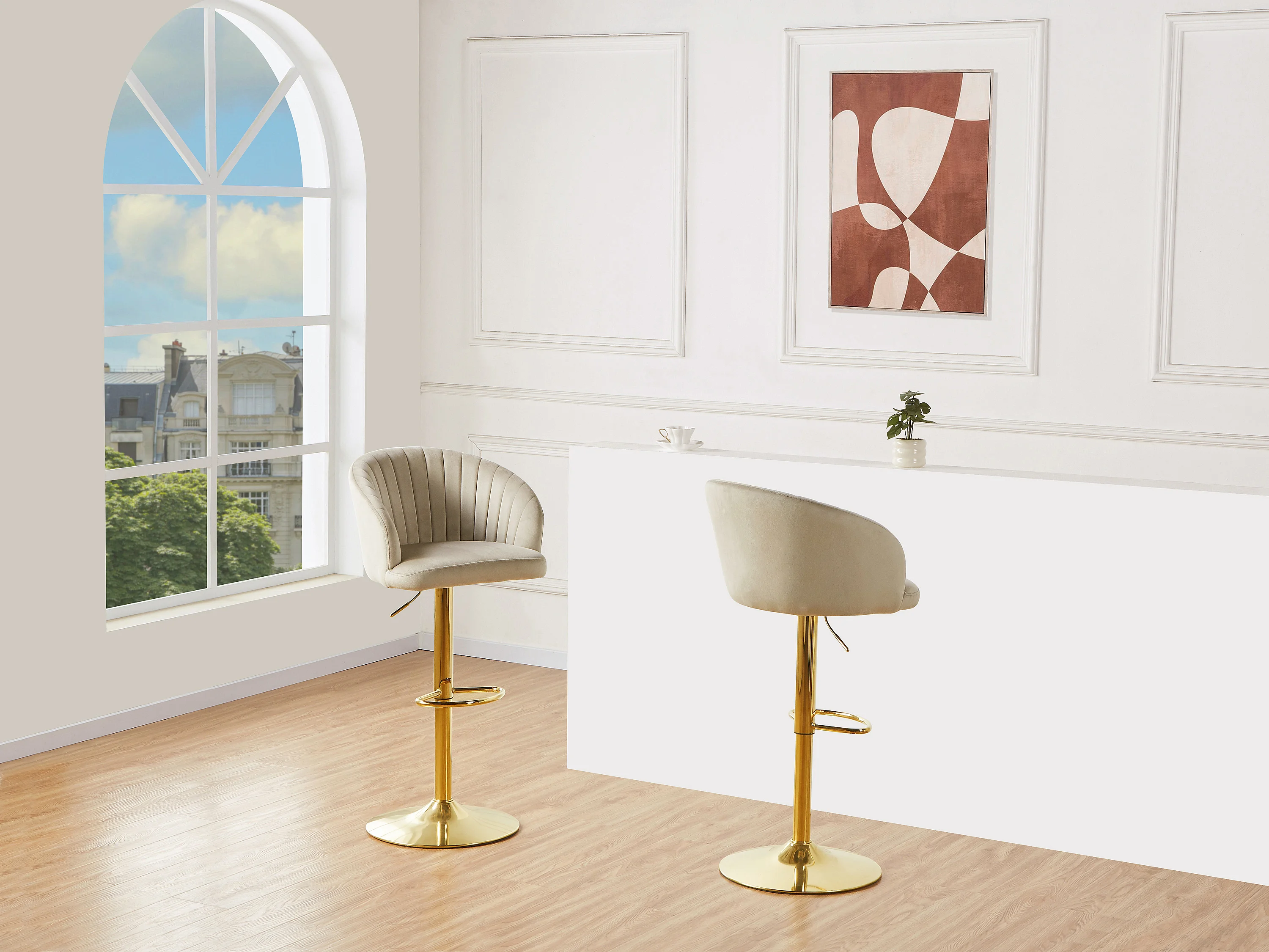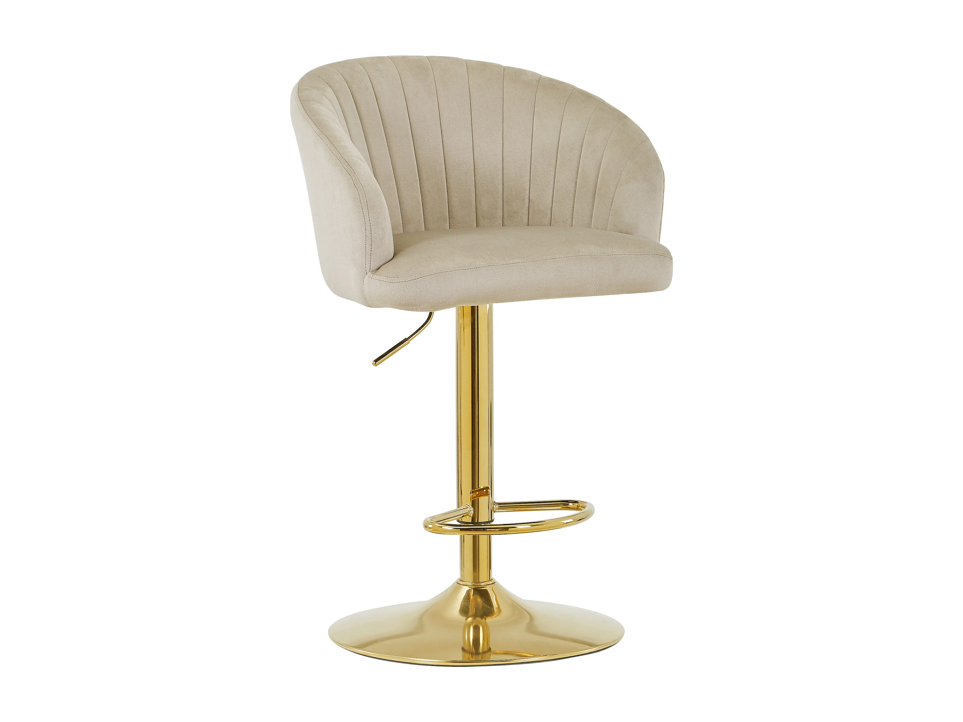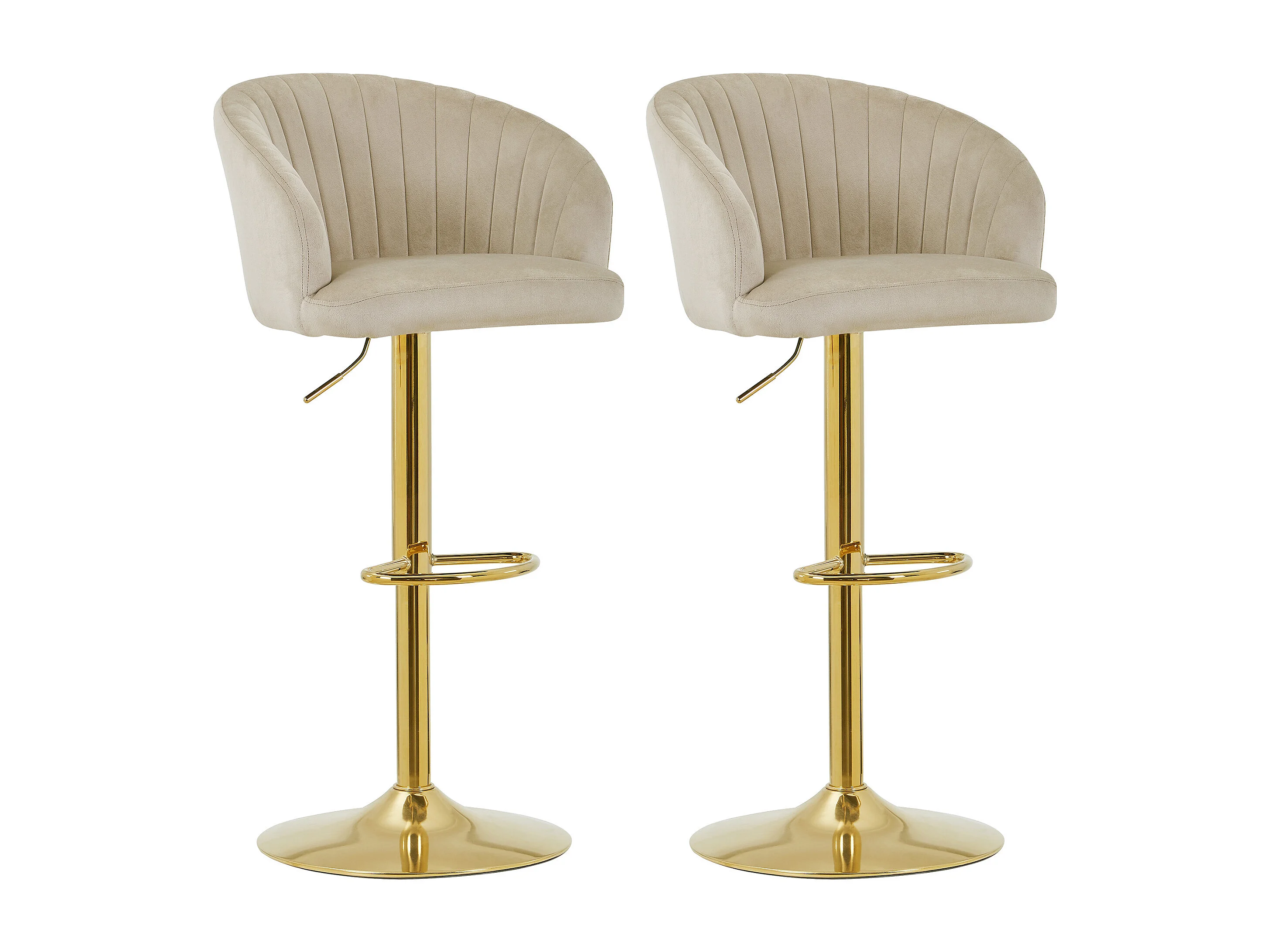 Lot de 2 tabourets de bar en velours et métal doré - Hauteur réglable - Beige - DORALIZ
