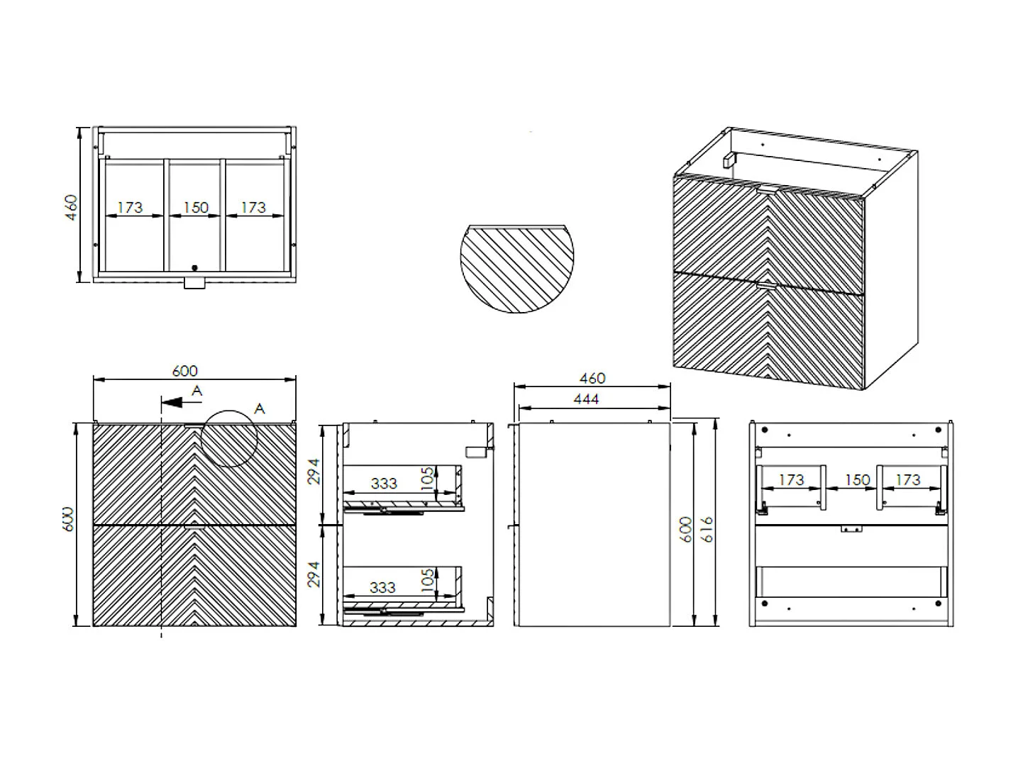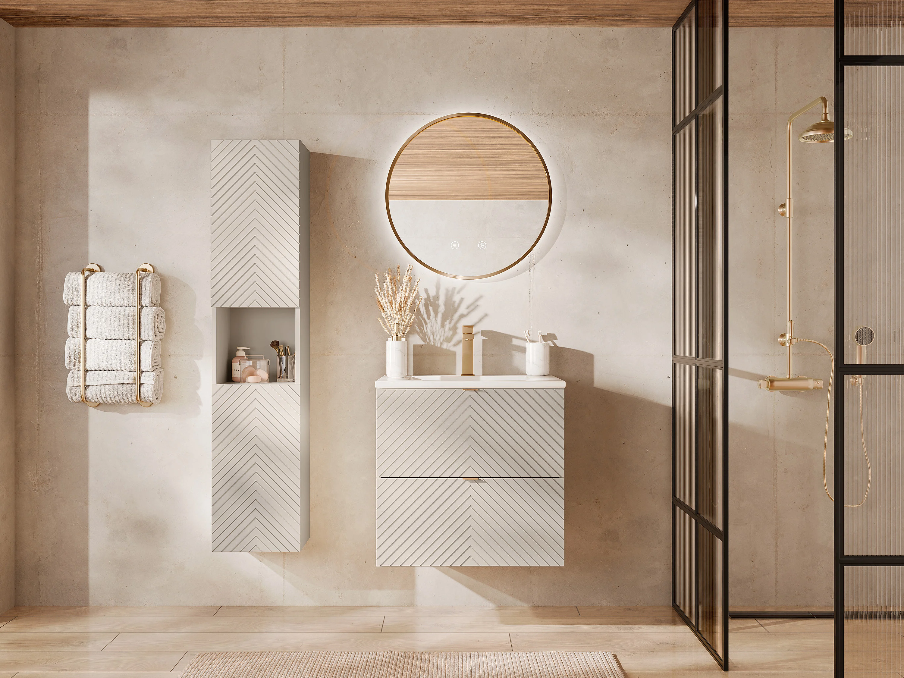 Meuble de salle de bain suspendu en chevrons avec vasque à encastrer et colonne - Beige - 60 cm - DORIONI