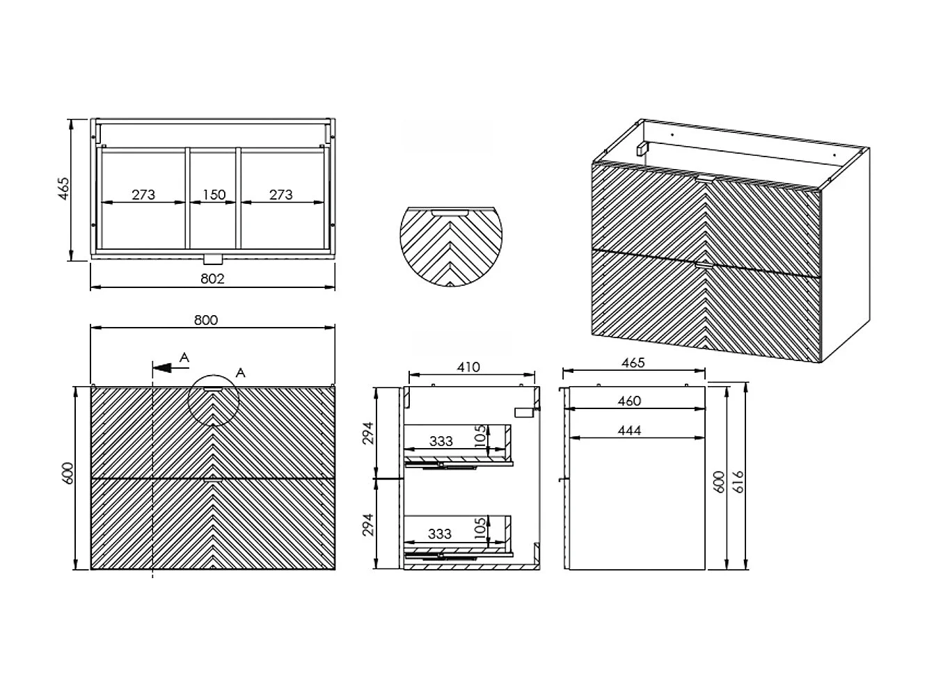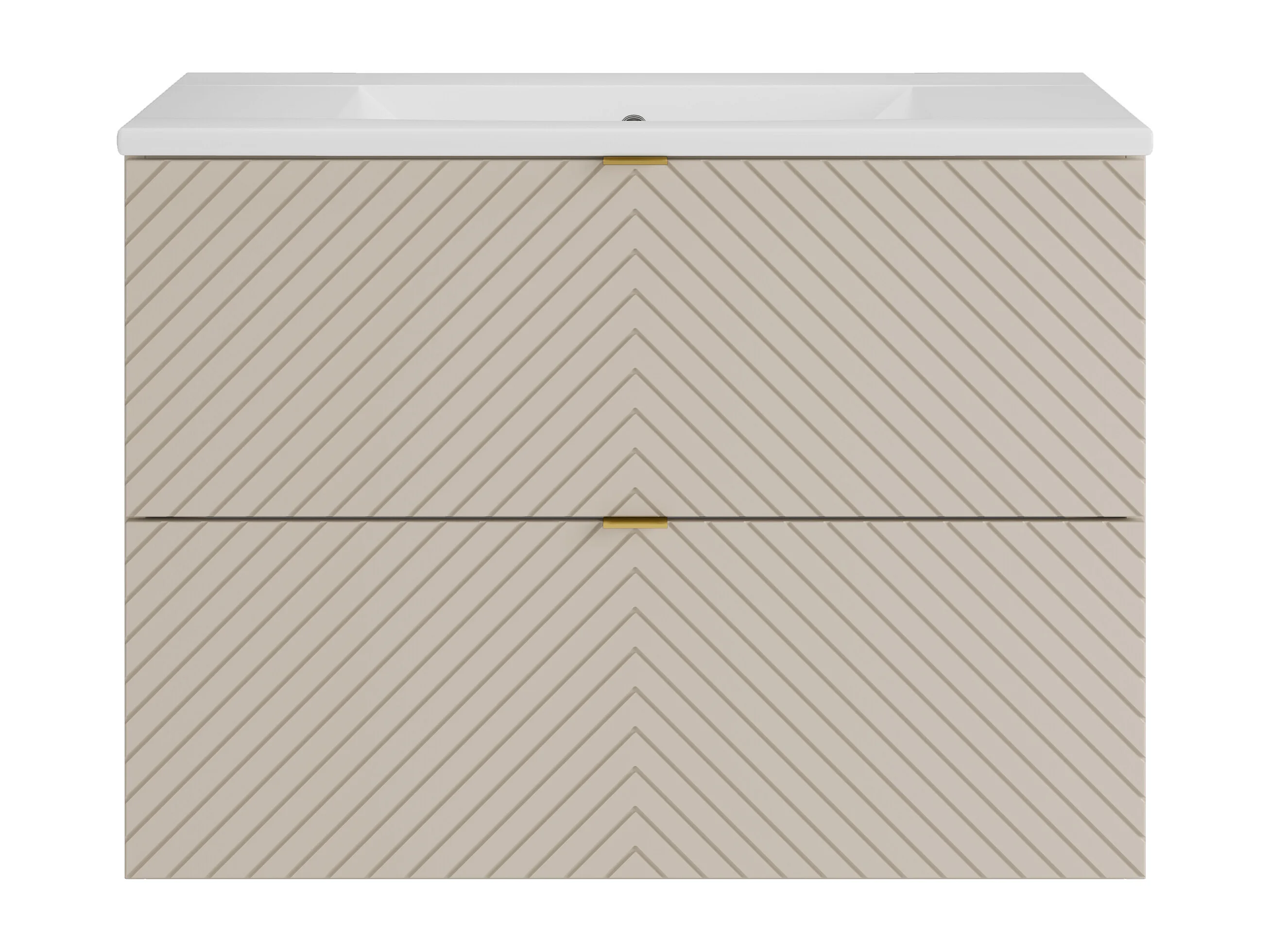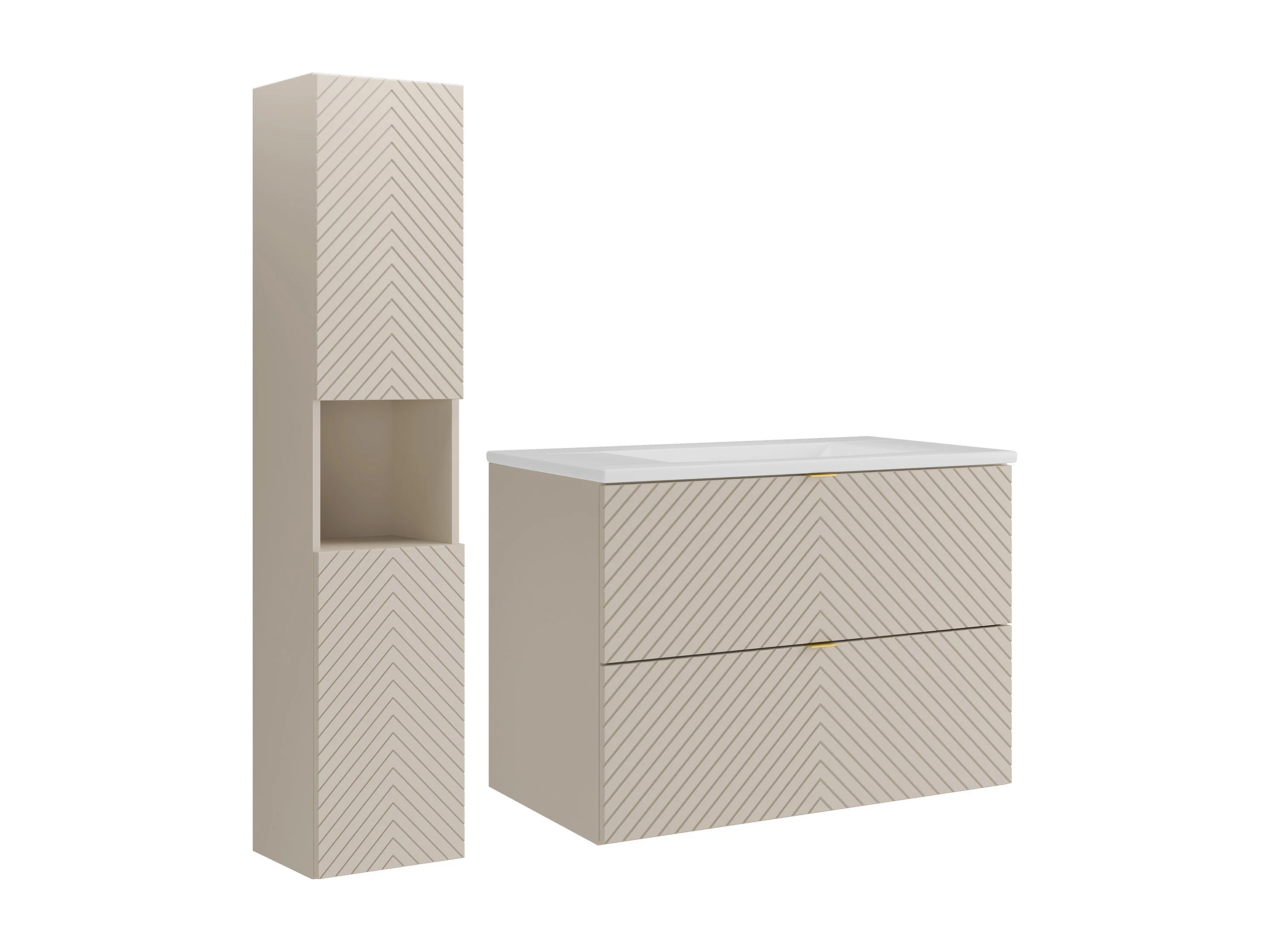 Meuble de salle de bain suspendu en chevrons avec vasque à encastrer et colonne - Beige - 80 cm - DORIONI