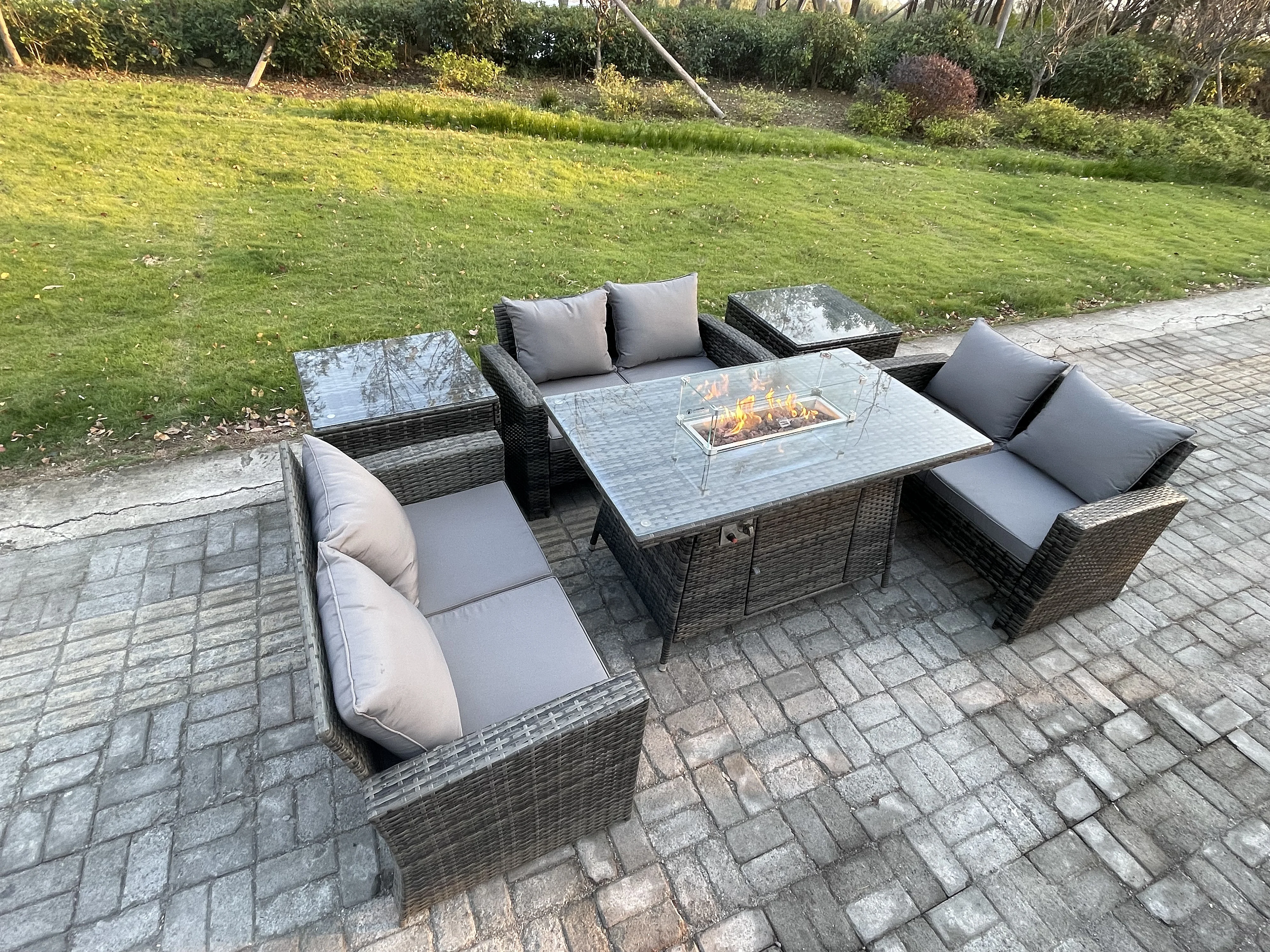 Dossier haut Ensemble de canapé en rotin Meubles d'extérieur ave Foyer à gaz Table à manger