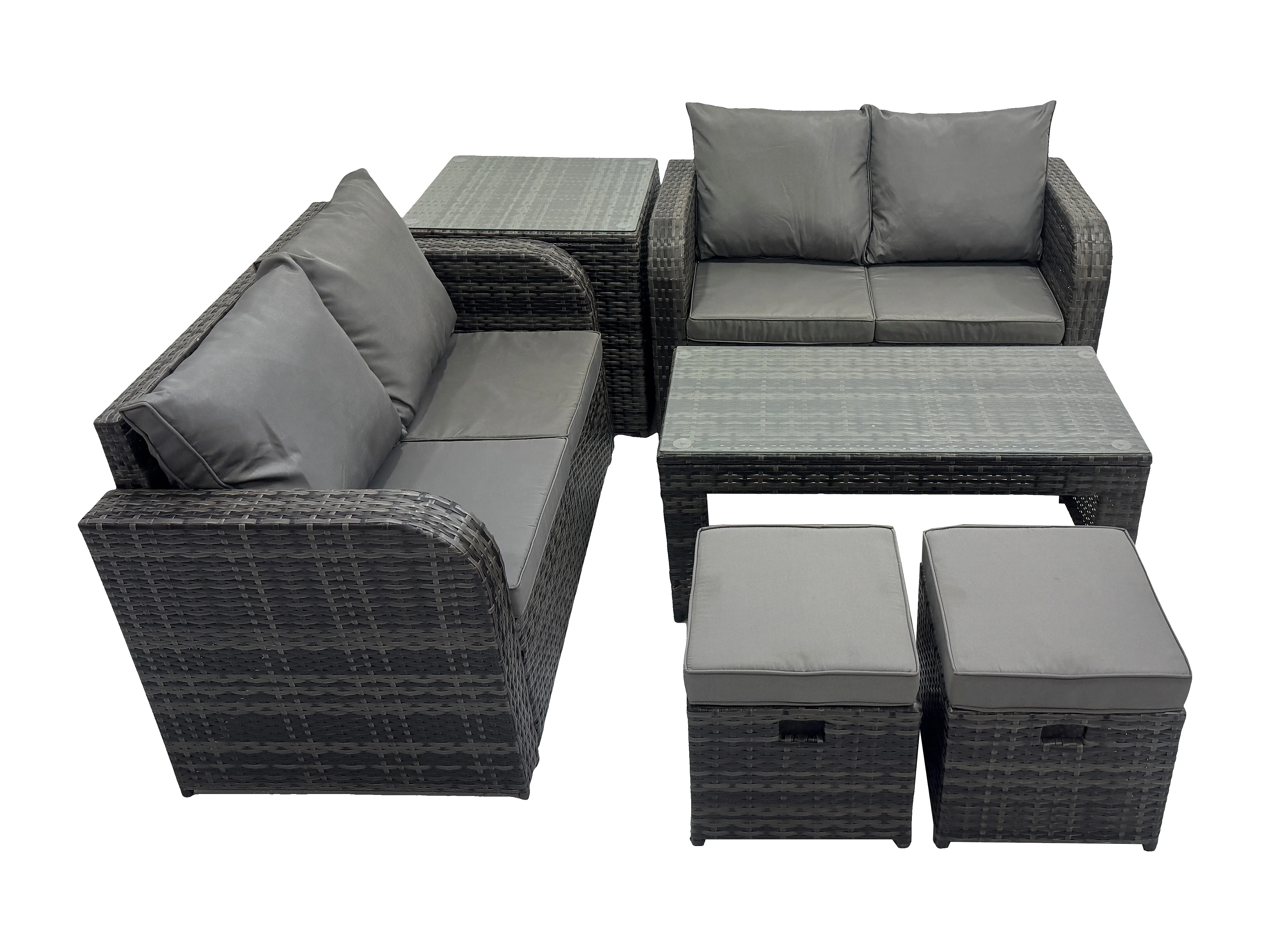 Dossier haut Salon de jardin avec Canapé d'amour Table basse rectangulaire 2 Petits tabourets Table d'appoint Gris foncé mixte