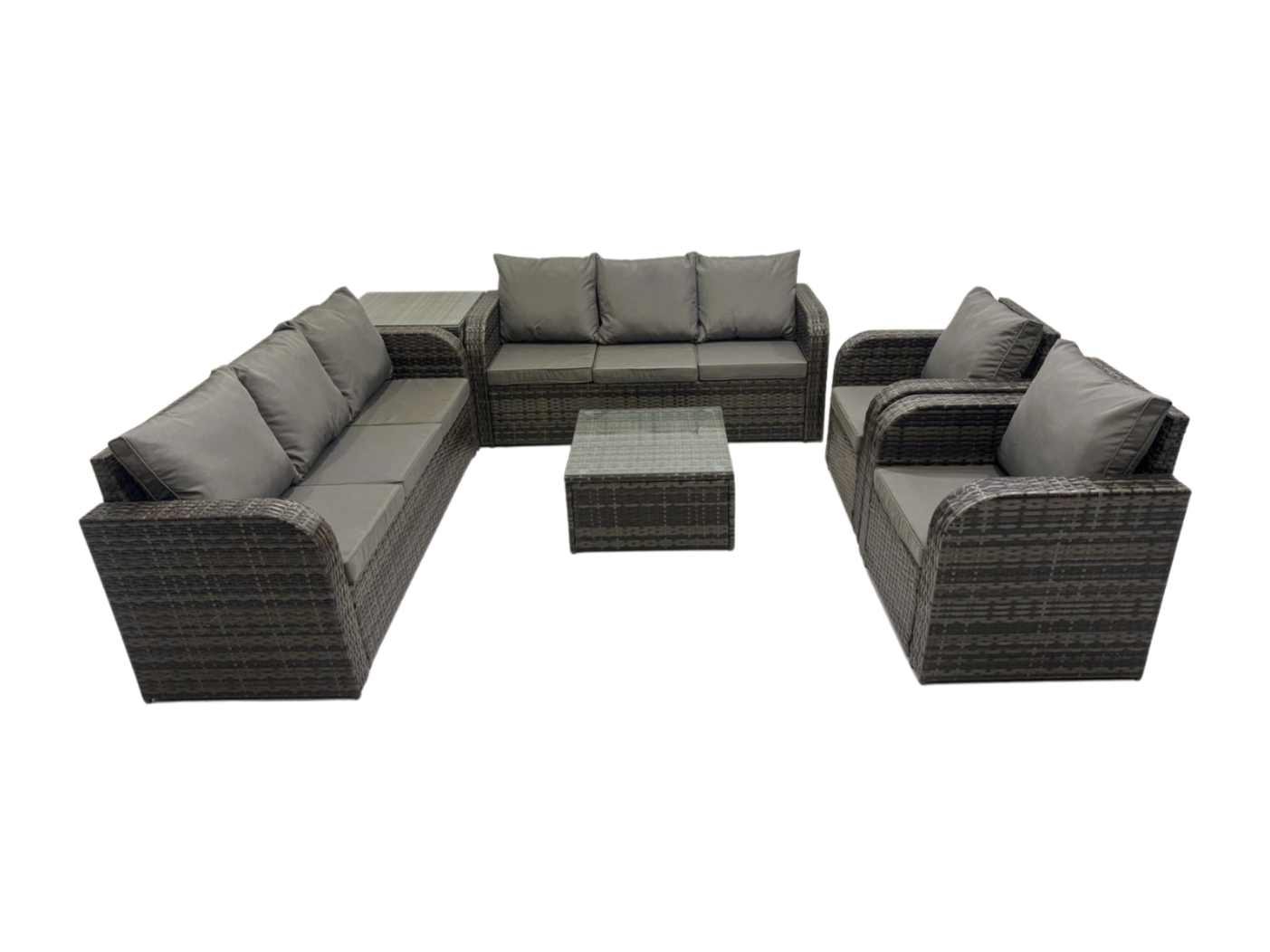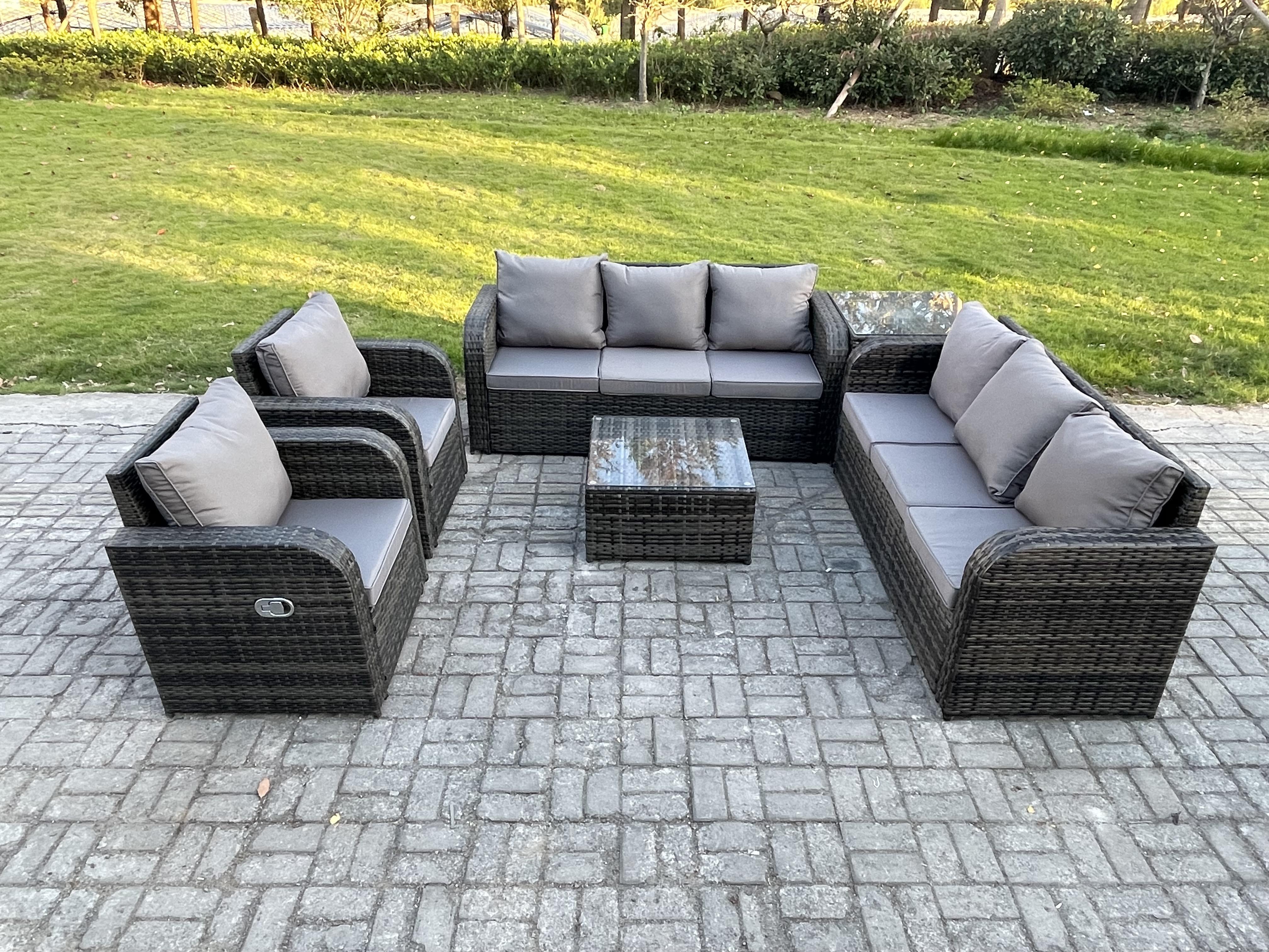 Dossier haut Salon de jardin avec Table basse carrée Table d'appoint Ensemble de canapés en rotin Gris foncé mixte