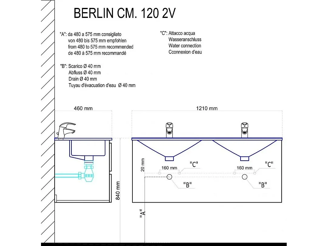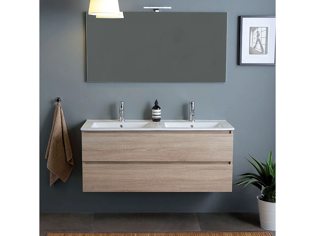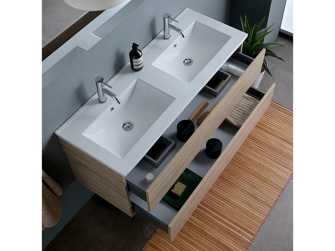 Double Lavabo Mural Meuble De Salle De Bain Avec Tiroirs Chêne Naturel 120Cm | Berlin