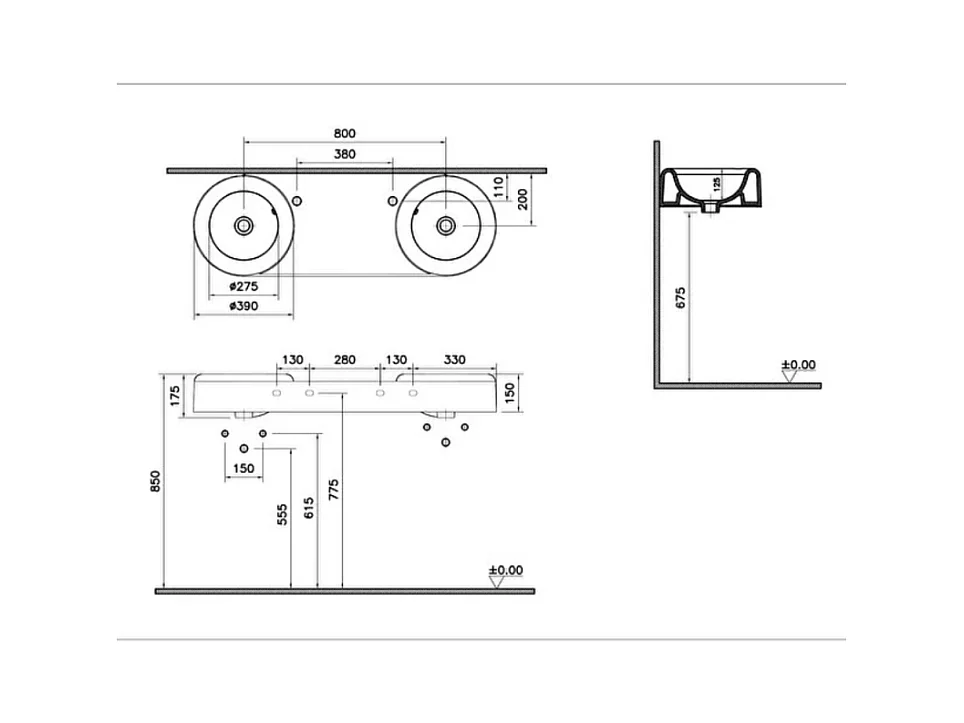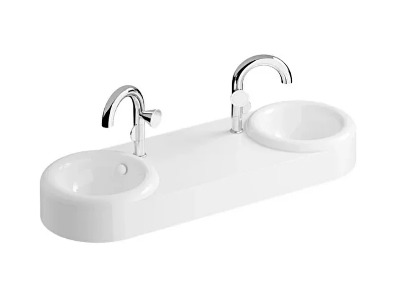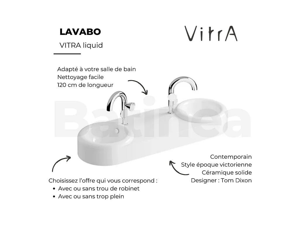Double lavabo VITRA Liquid 120 cm avec trou et avec trop-plein