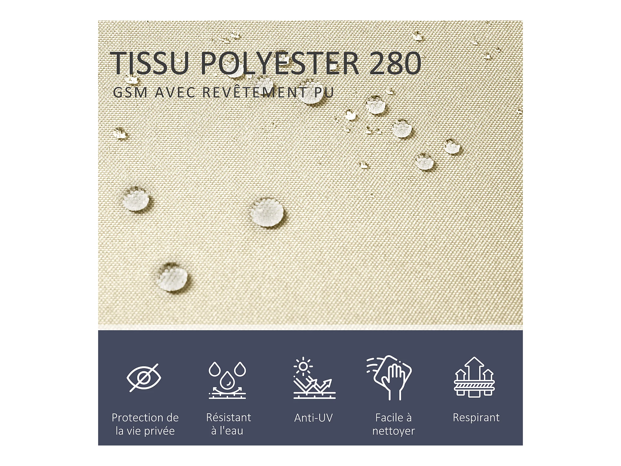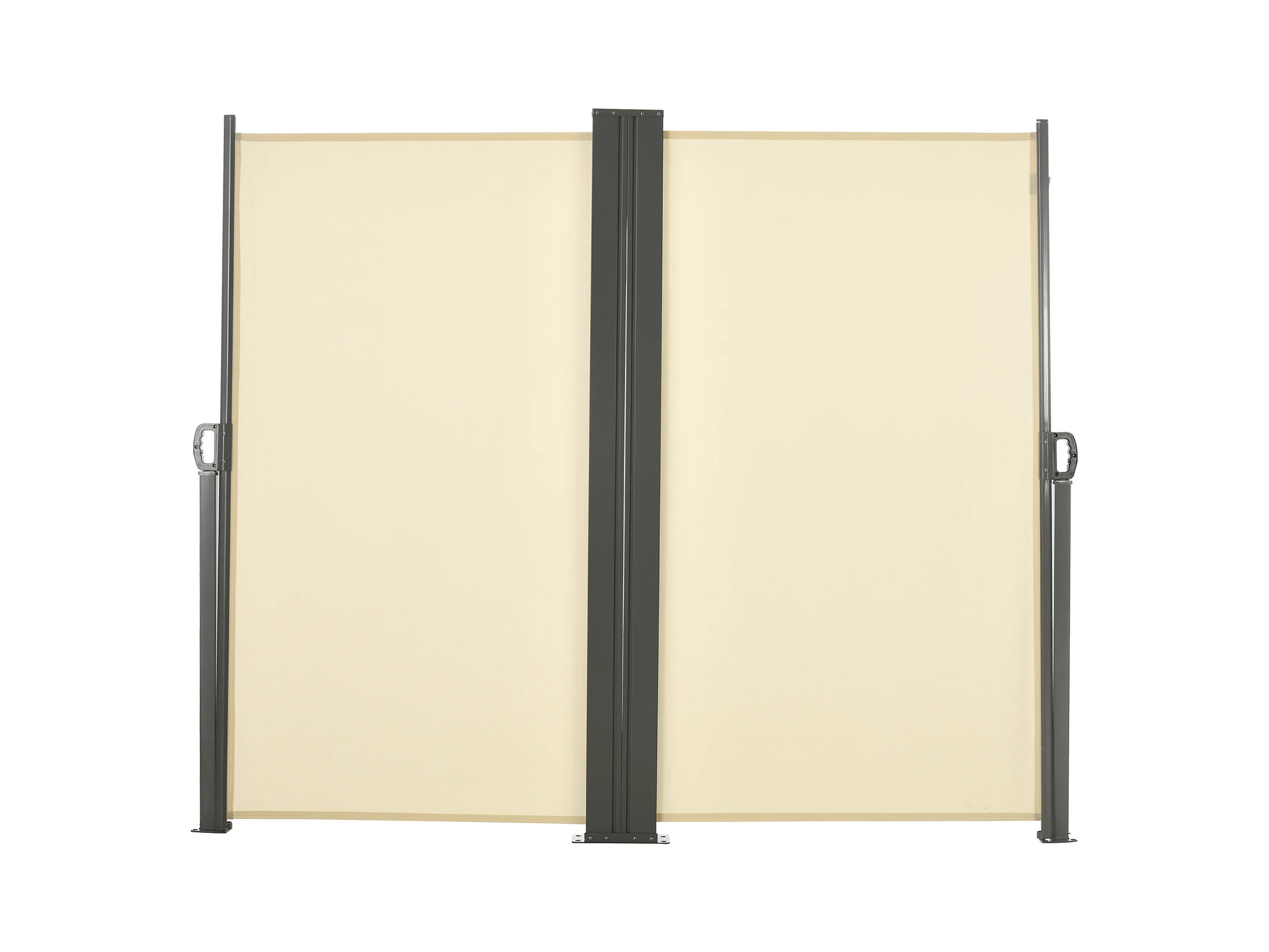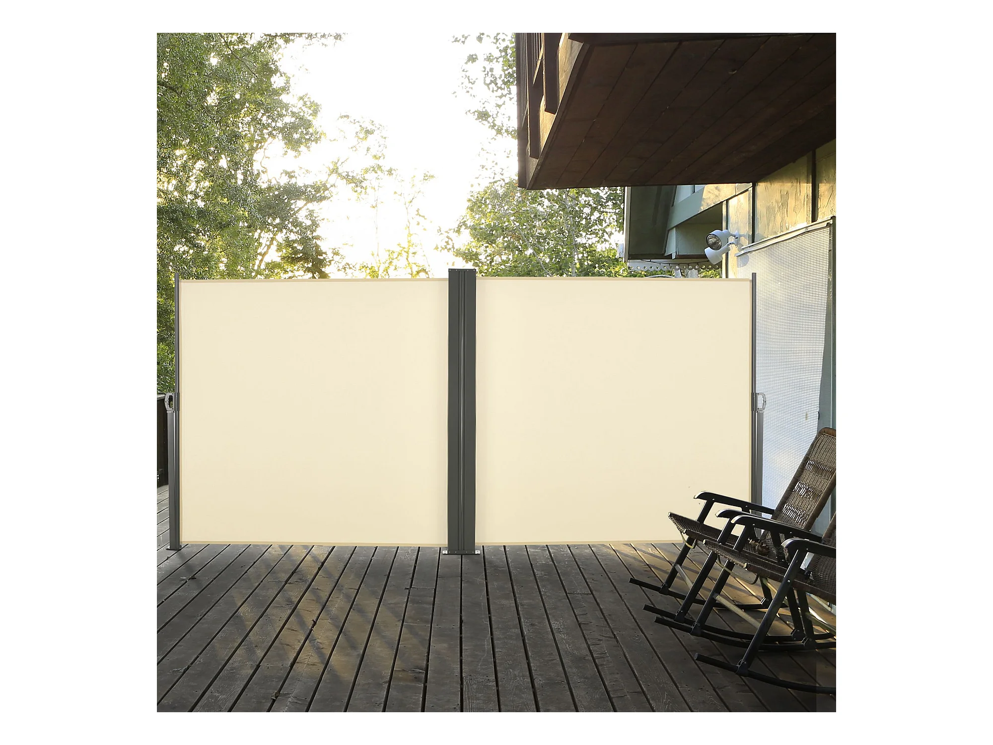 Double store latéral brise-vue paravent rétractable dim. 6L x 1,60H m polyester anti-UV haute densité crème