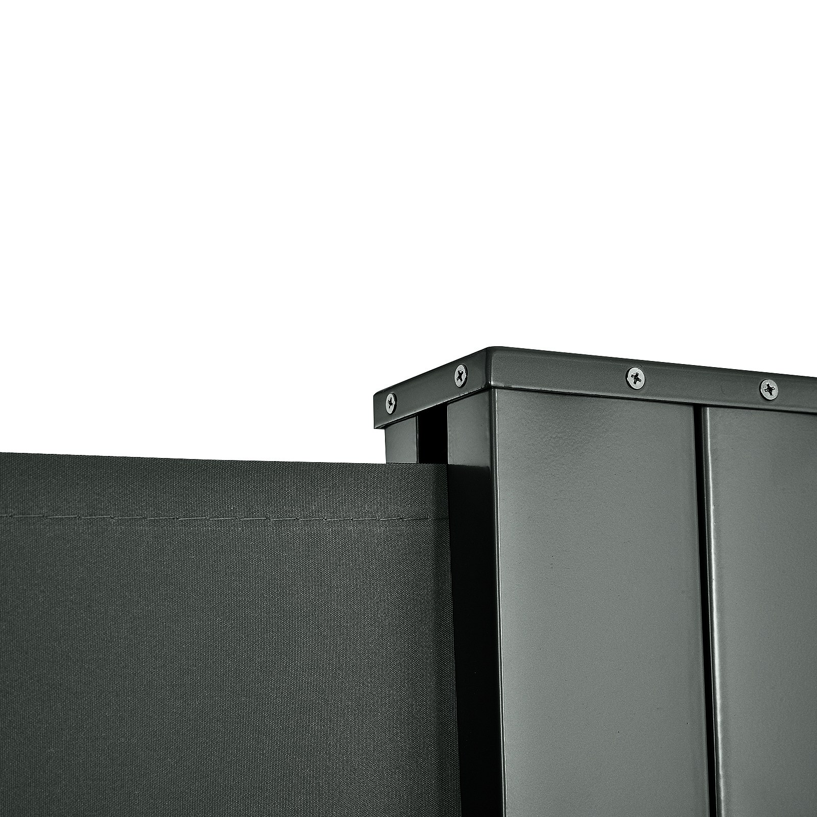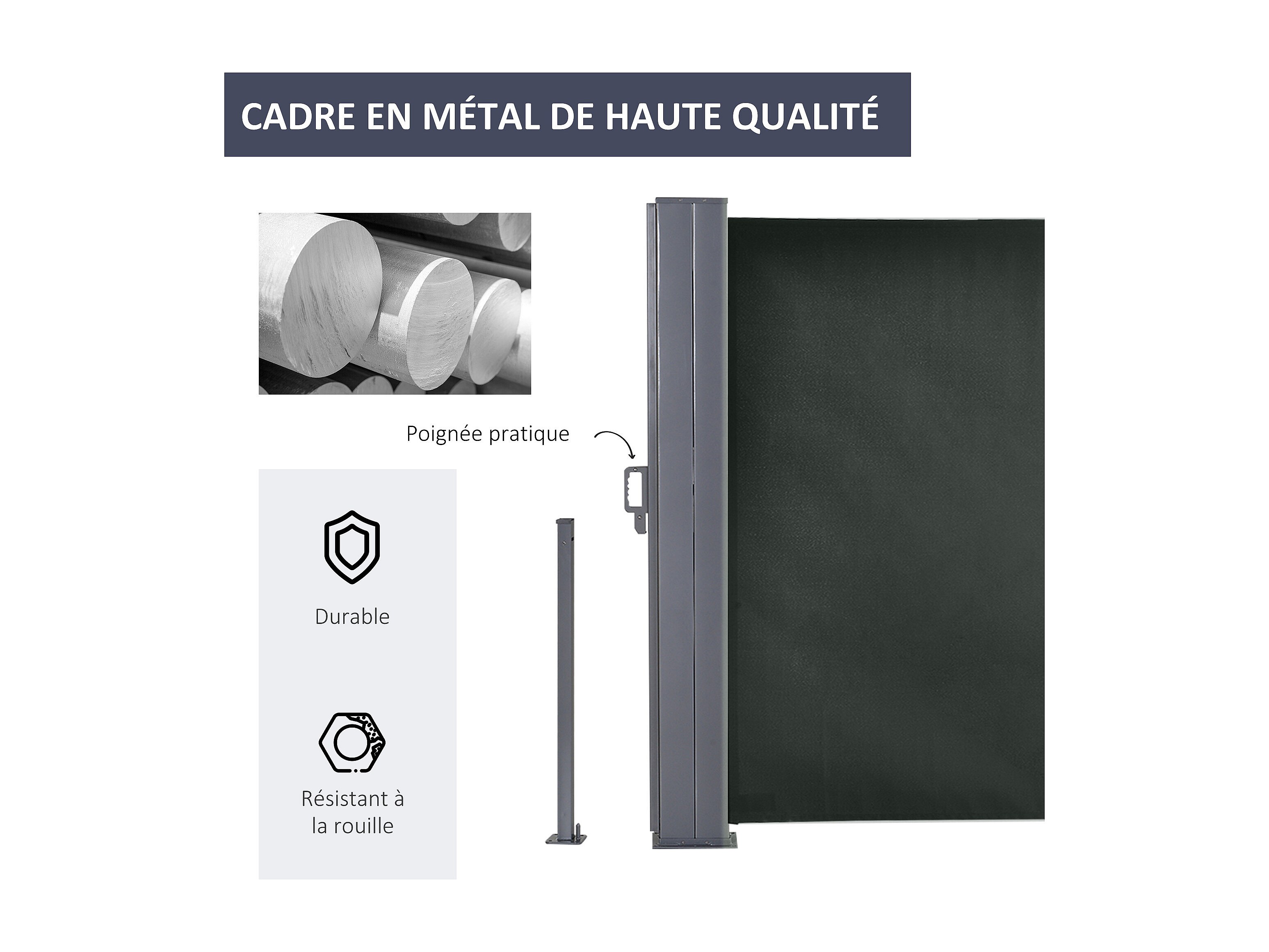 Store latéral brise-vue paravent rétractable dim. 3L x 1,60H m alu. polyester anti-UV haute densité 280 g/m² gris