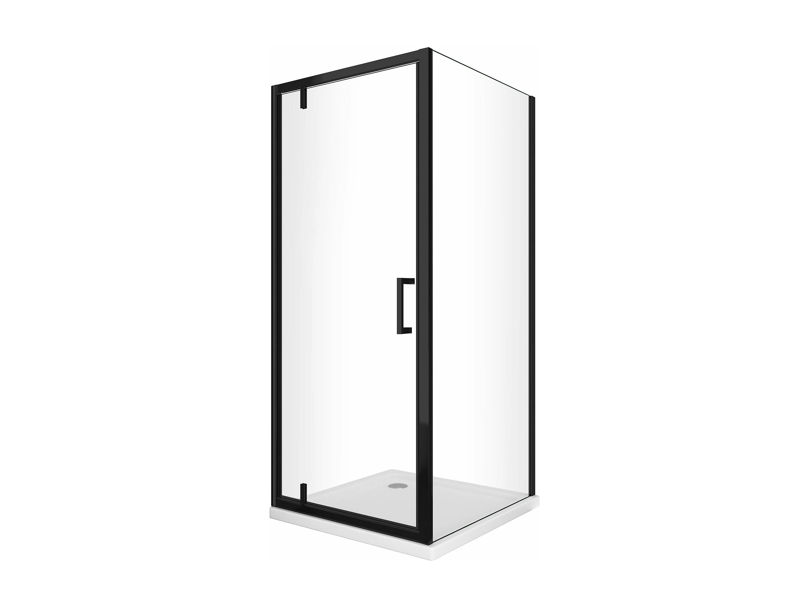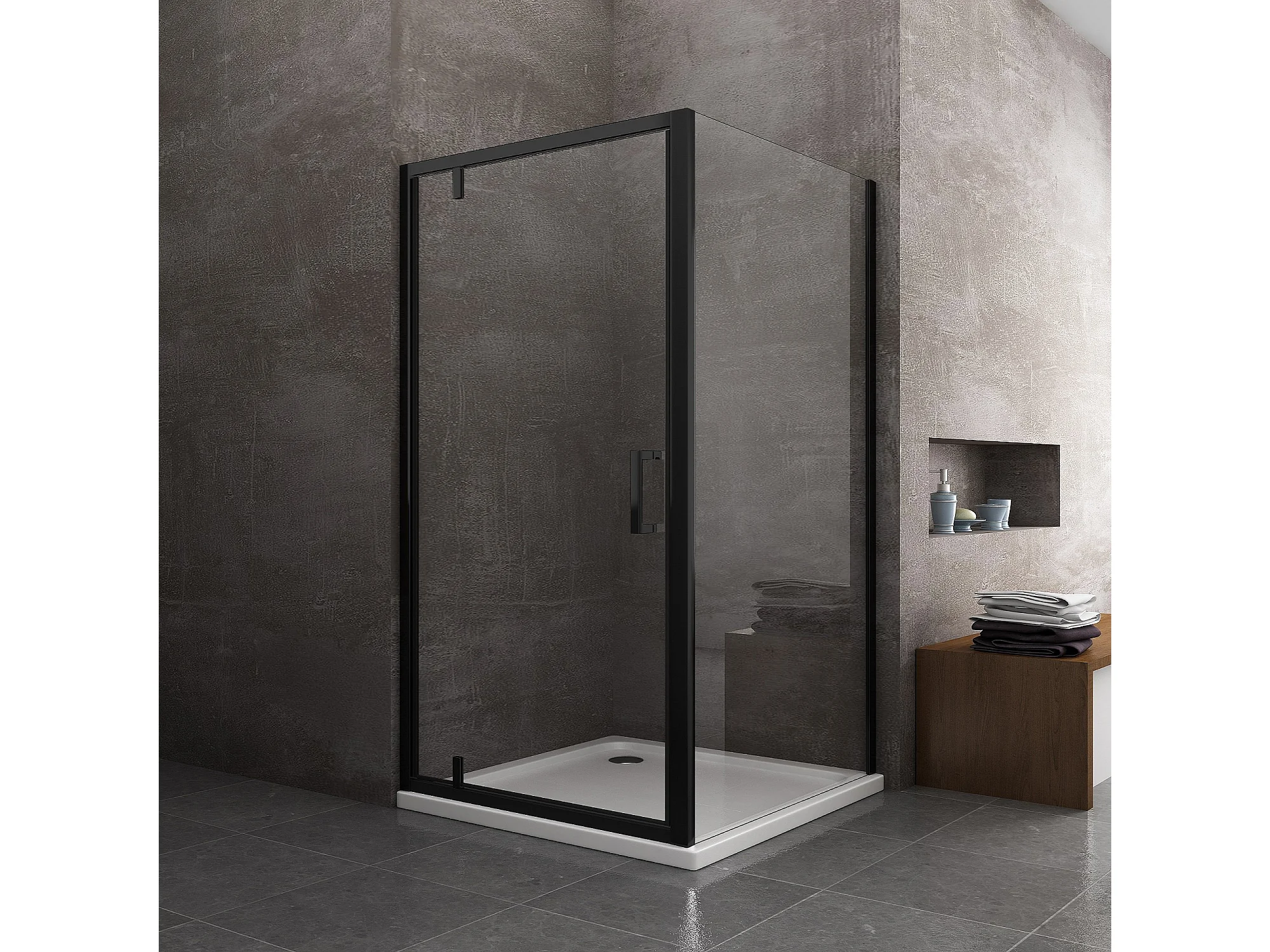 Douche avec paroi latérale fixe et porte roto-translante avec pivots asymétriques, verre 8 mm H 200 noir mat 70 (68-70) FIXE x PORTE 70 (67-70)