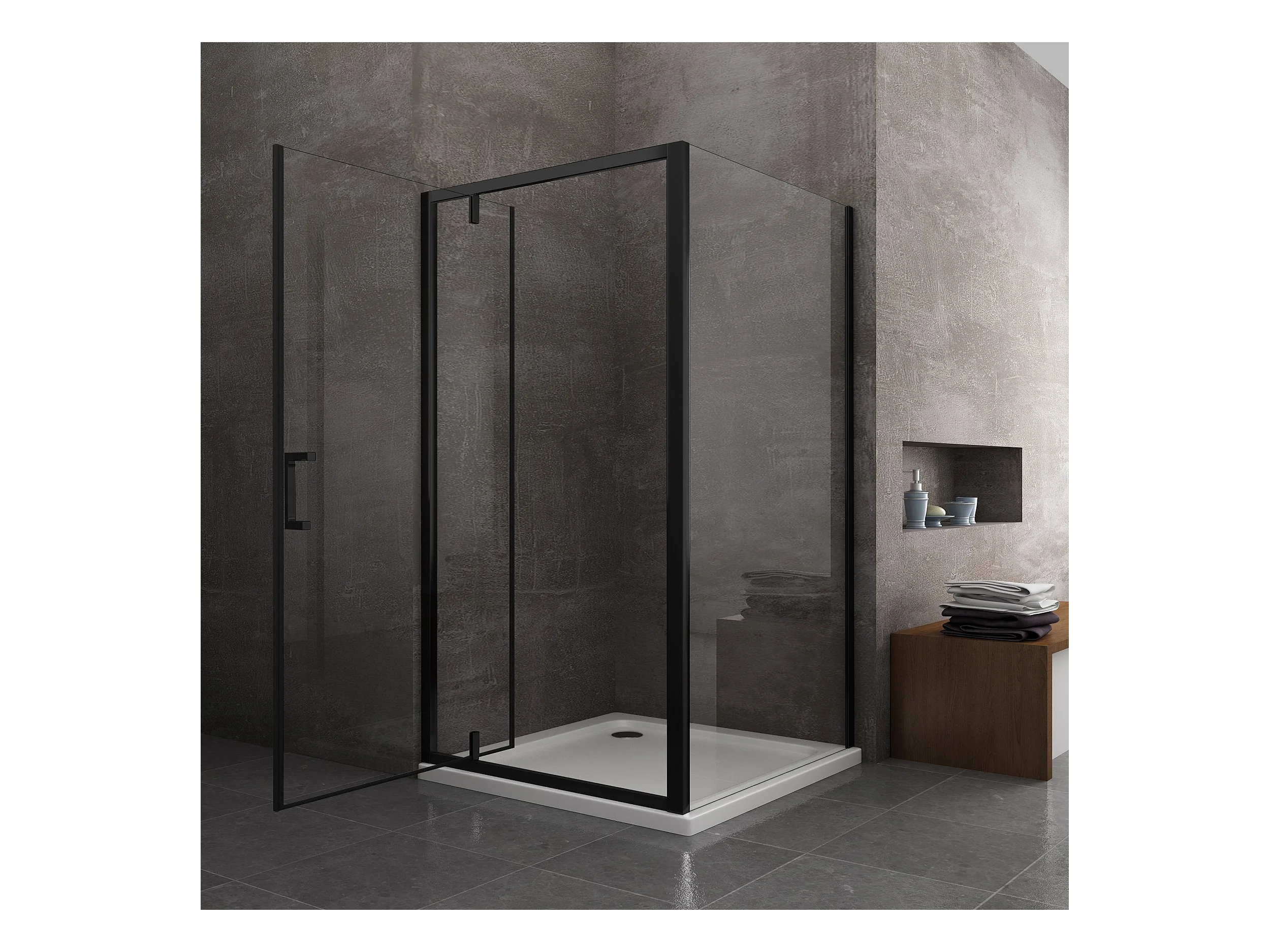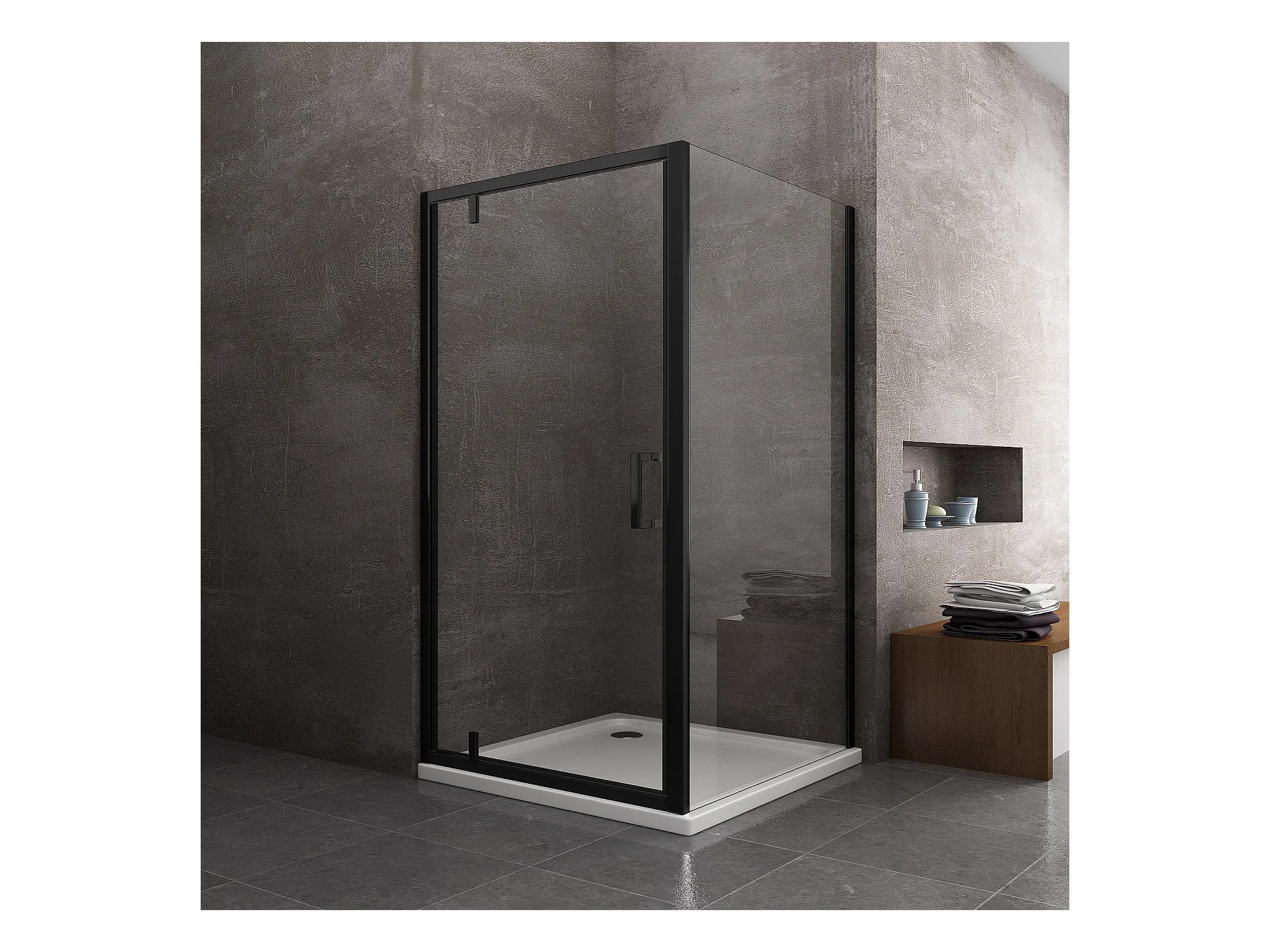 Douche avec paroi latérale fixe et porte roto-translante avec pivots asymétriques, verre 8 mm H 200 noir mat 70 (68-70) FIXE x PORTE 90 (87-90)
