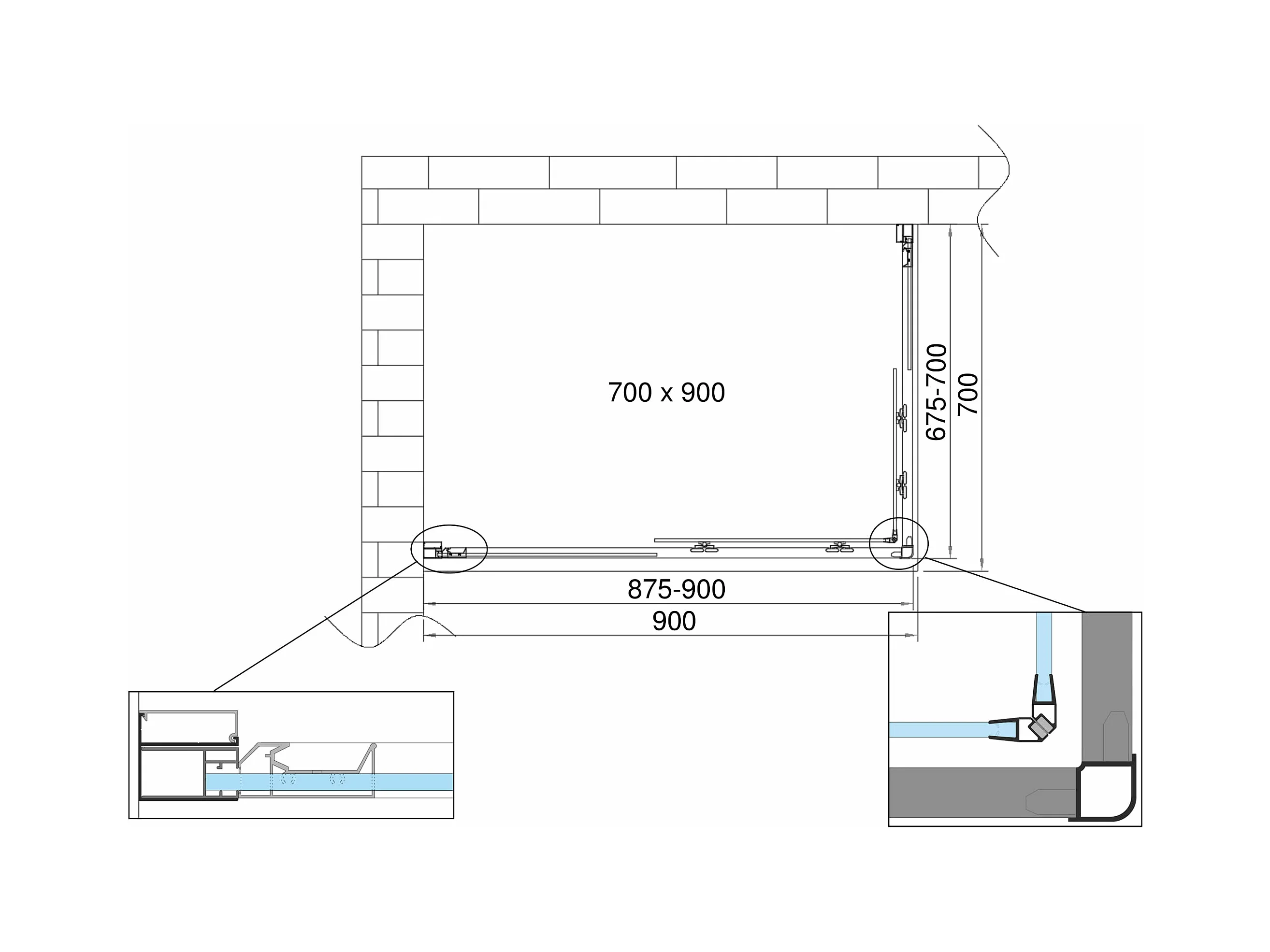 Douche de 6 mm angulaire rectangulaire avec profil chromé (receveur non inclu) - 70 x 90