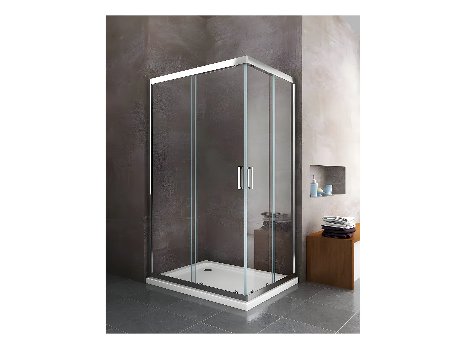 Douche de 6 mm angulaire rectangulaire avec profil chromé (receveur non inclu) - 80 x 100