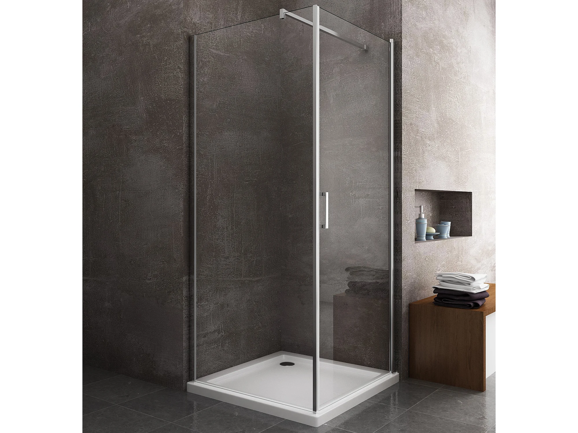 Douche de 8 mm avec porte à battant et paroi fixe laterale H.200 (receveur non inclu)– 72-74 porte x 68,5-70,5 fixe