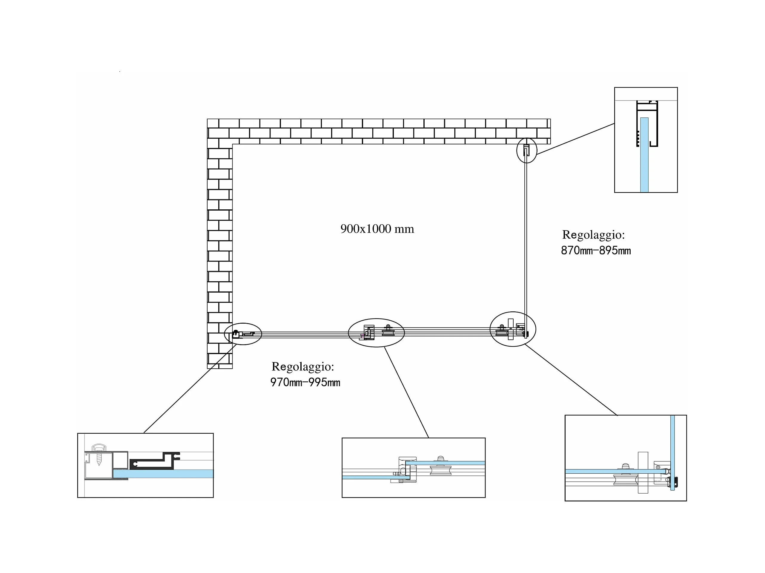 Douche de 8 mm H.190 avec un paroi fixe et une porte coulissante (receveur non inclu)– 90 fixe x 100 coulissante