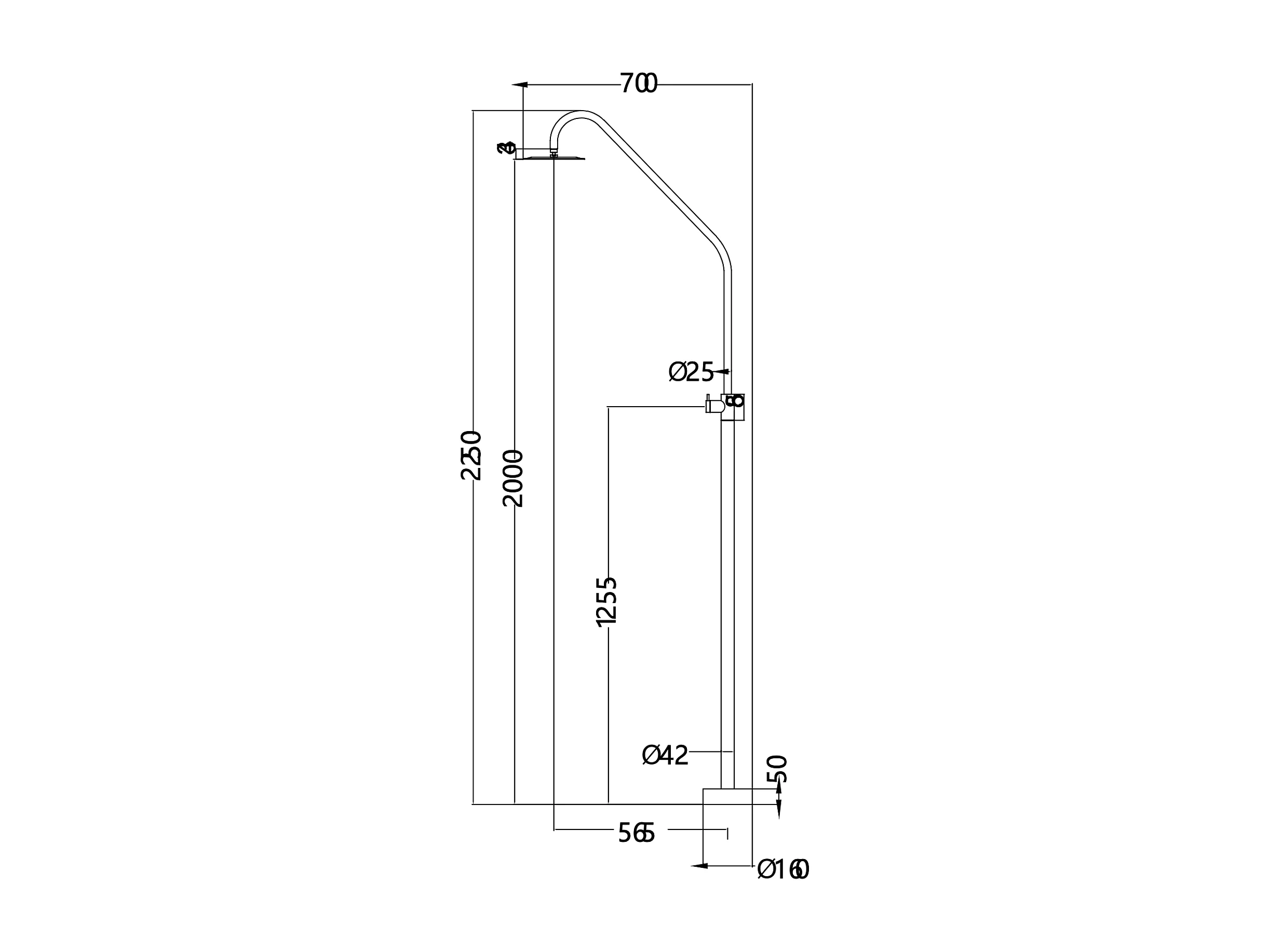 Douche de piscine Alaska en Acier Inox.S316 Noir Mat – Tête Ø25cm /Corps Ø42mm/H. 2,25m – Garantie 10 ans - POOLIMEX