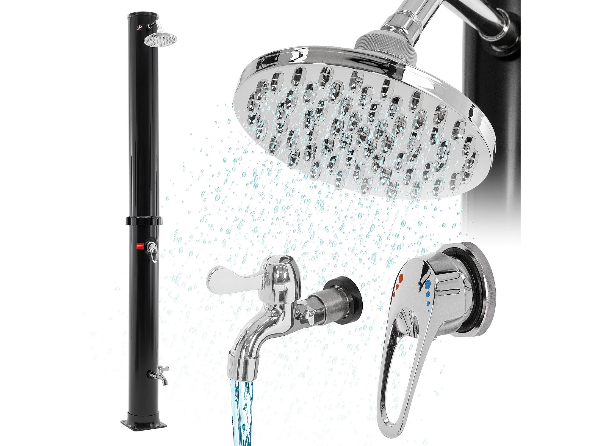 Douche solaire 35 litres avec pomme de douche effet pluie raccord d'eau 207 cm