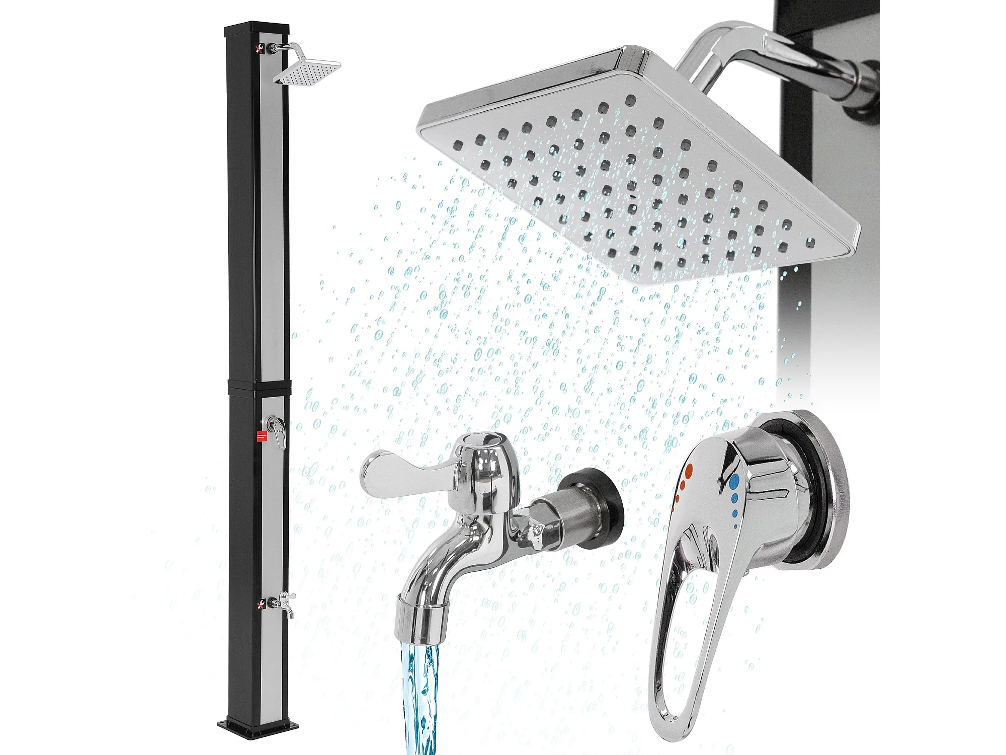 Douche solaire d'extérieur + douche à pied et pomme de douche noir/argent 40 L