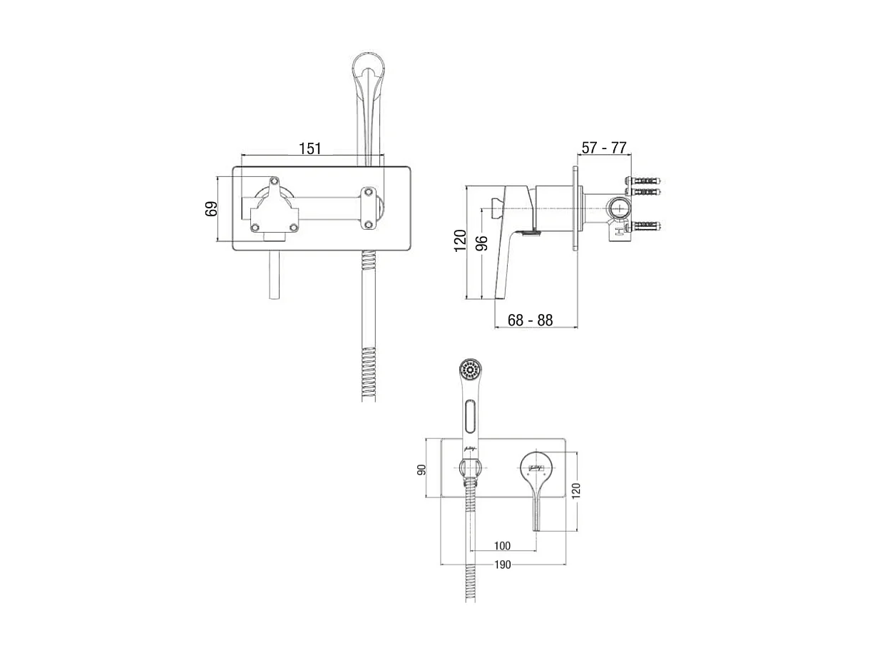 Douchette WC PAINI Cox carrée Chrome + support + flexible