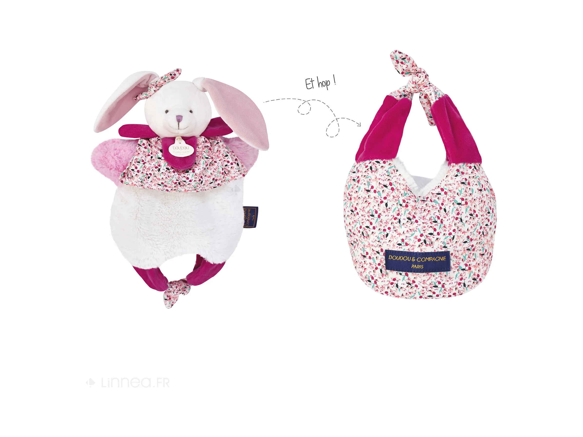 Peluche lapin Ciboulette avec son doudou 28 cm polyester collection DANS MON JARDIN rose