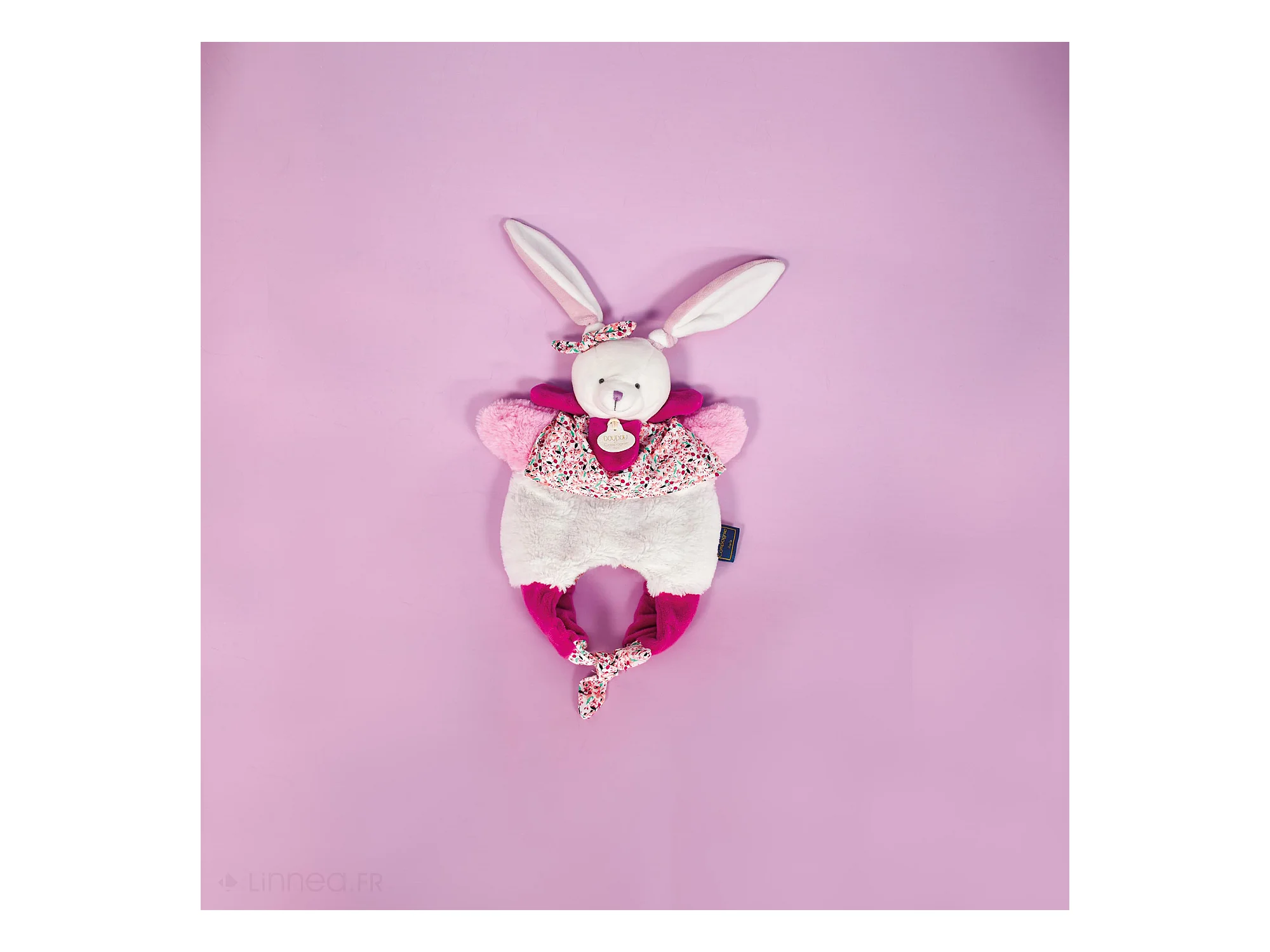 Doudou plat lapin Ciboulette 27 cm polyester collection DANS MON JARDIN rose