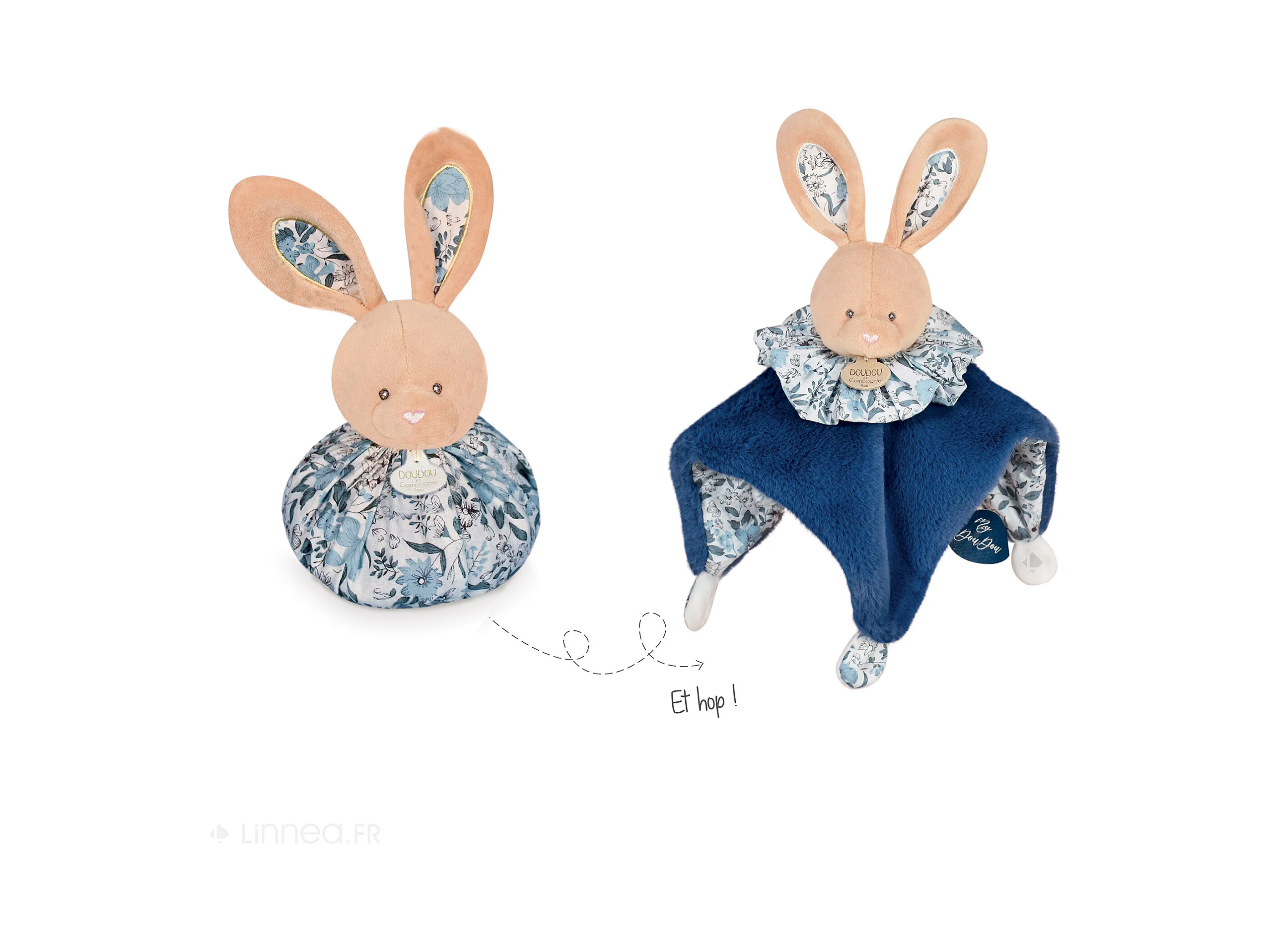 Doudou boule 25 cm polyester collection LES PETITS FUTÉS lapin bleu