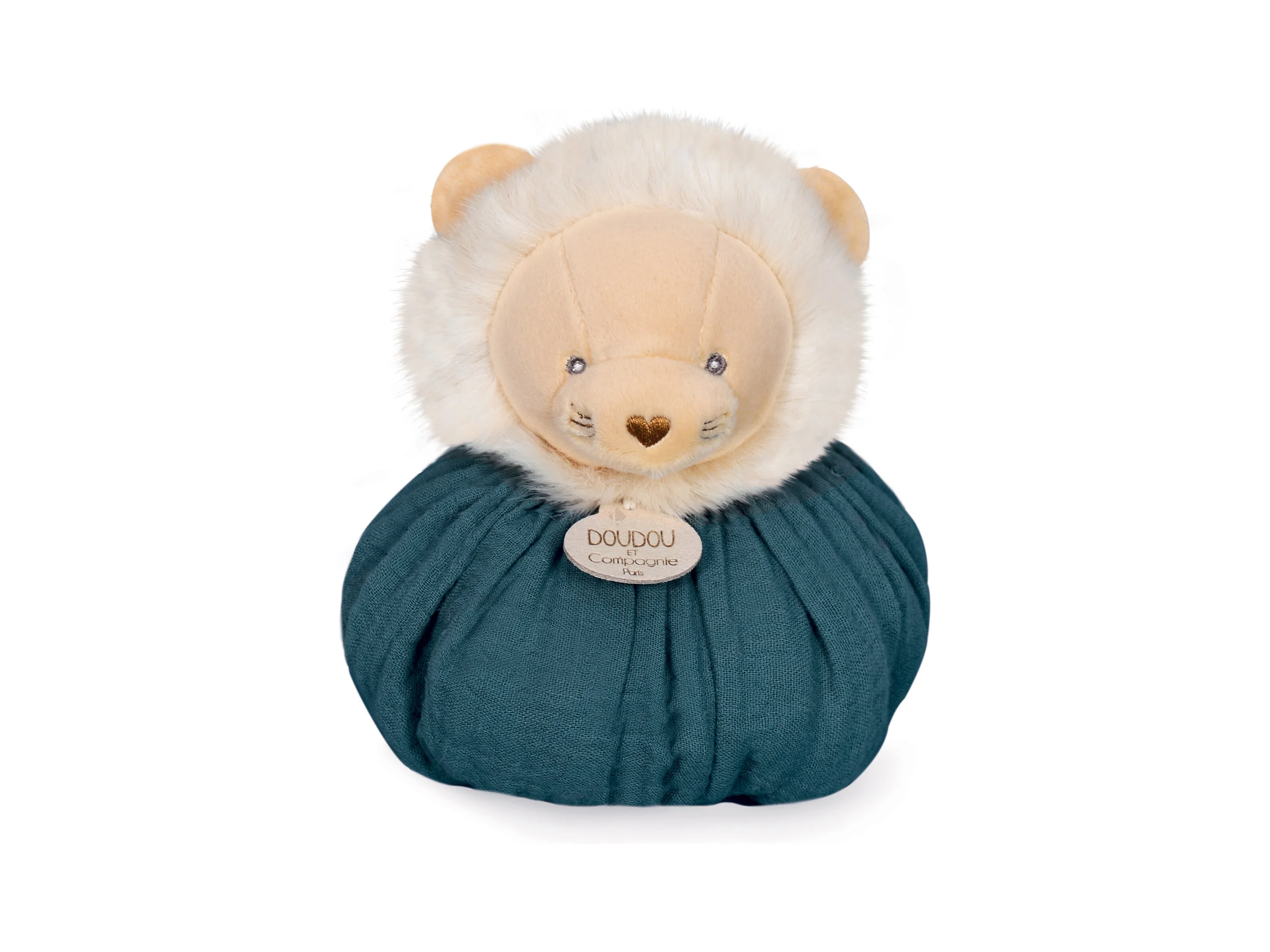 Doudou boule 25 cm polyester collection LES PETITS FUTÉS lion vert
