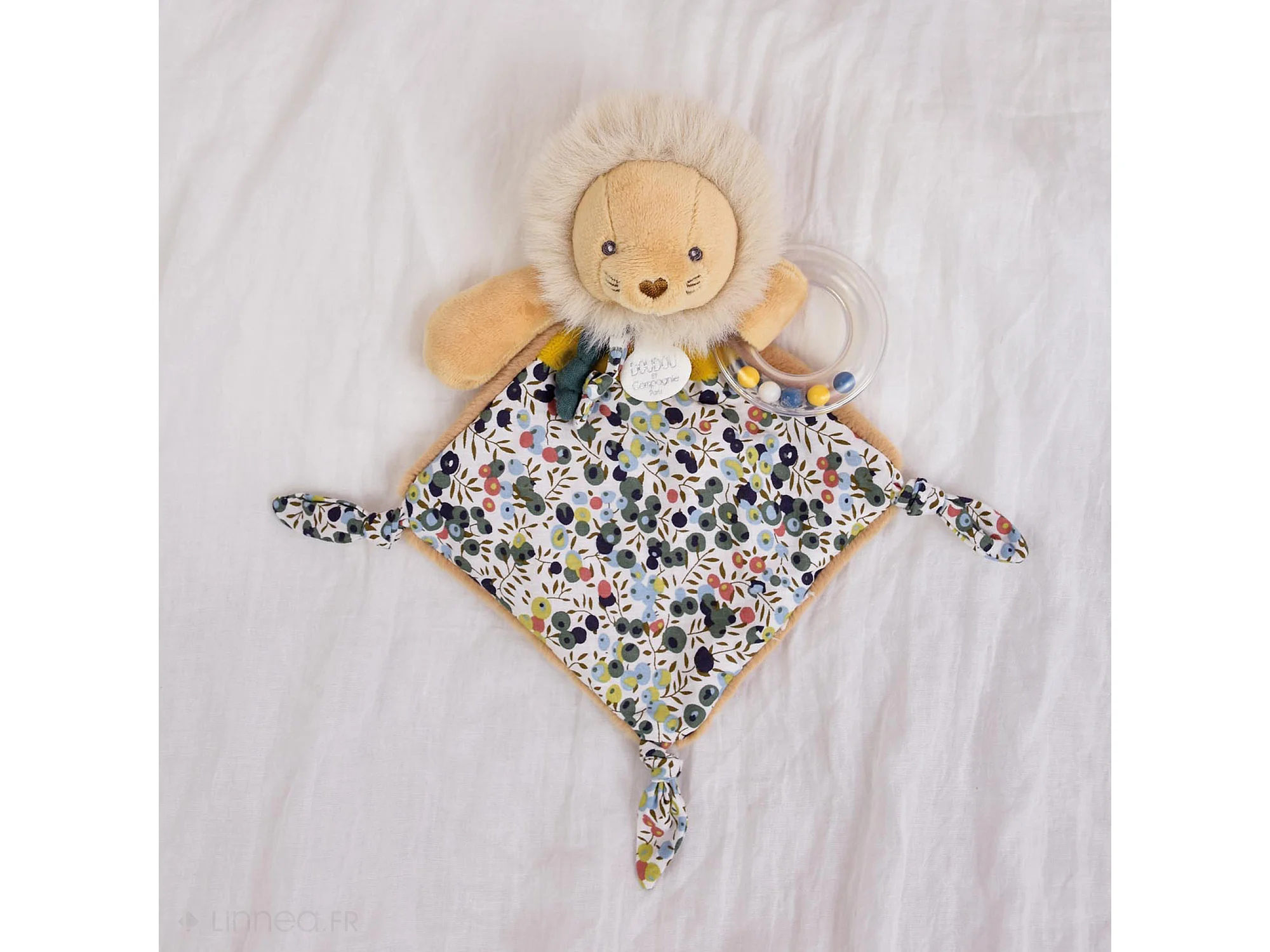 Doudou hochet 22 cm polyester BOH'AIME lion jaune multicolore