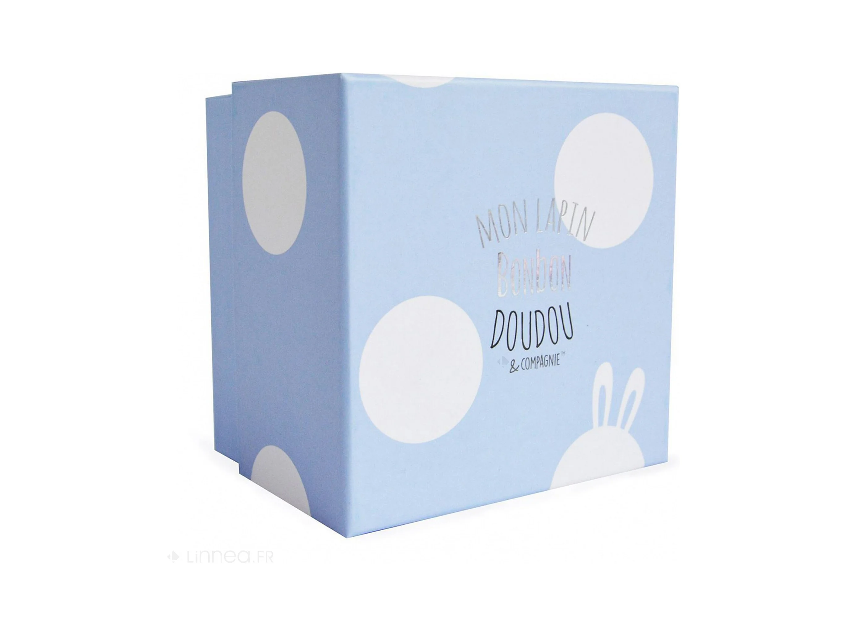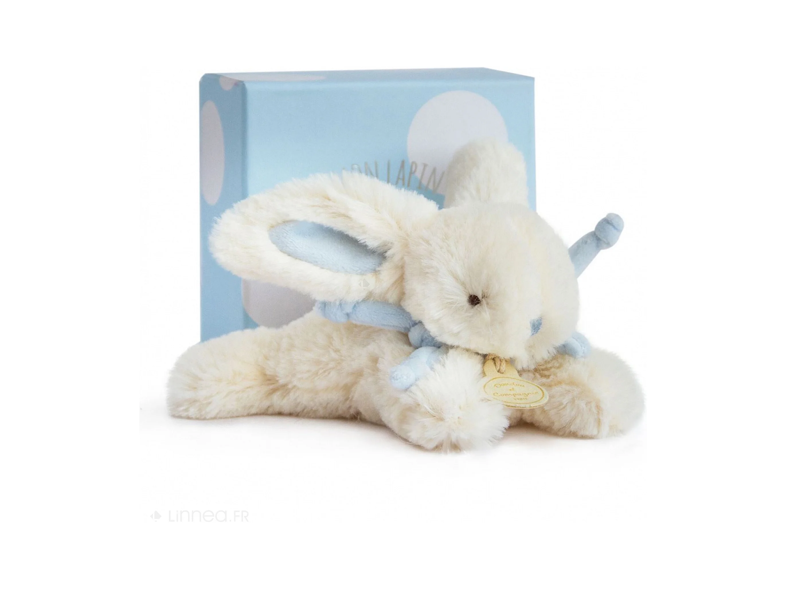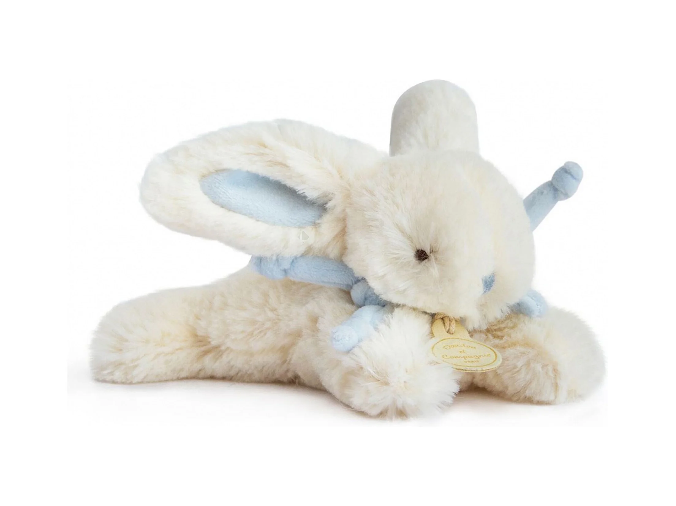 Doudou lapin 16 cm polyester collection LAPIN BONBON blanc/bleu