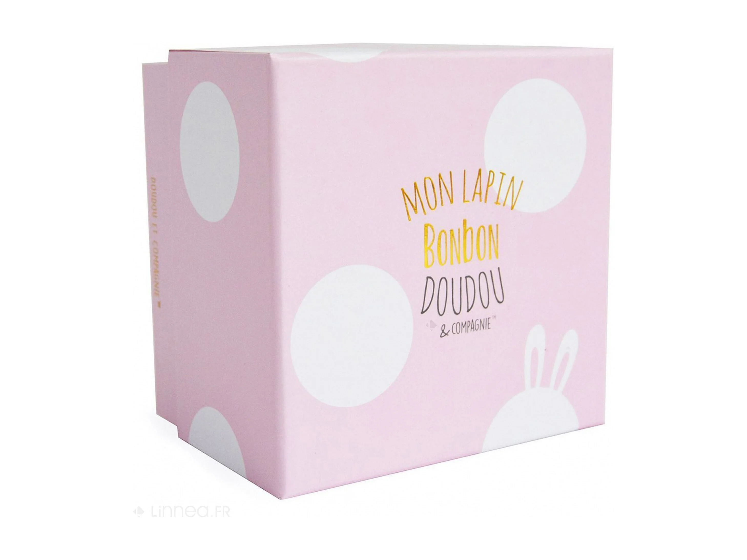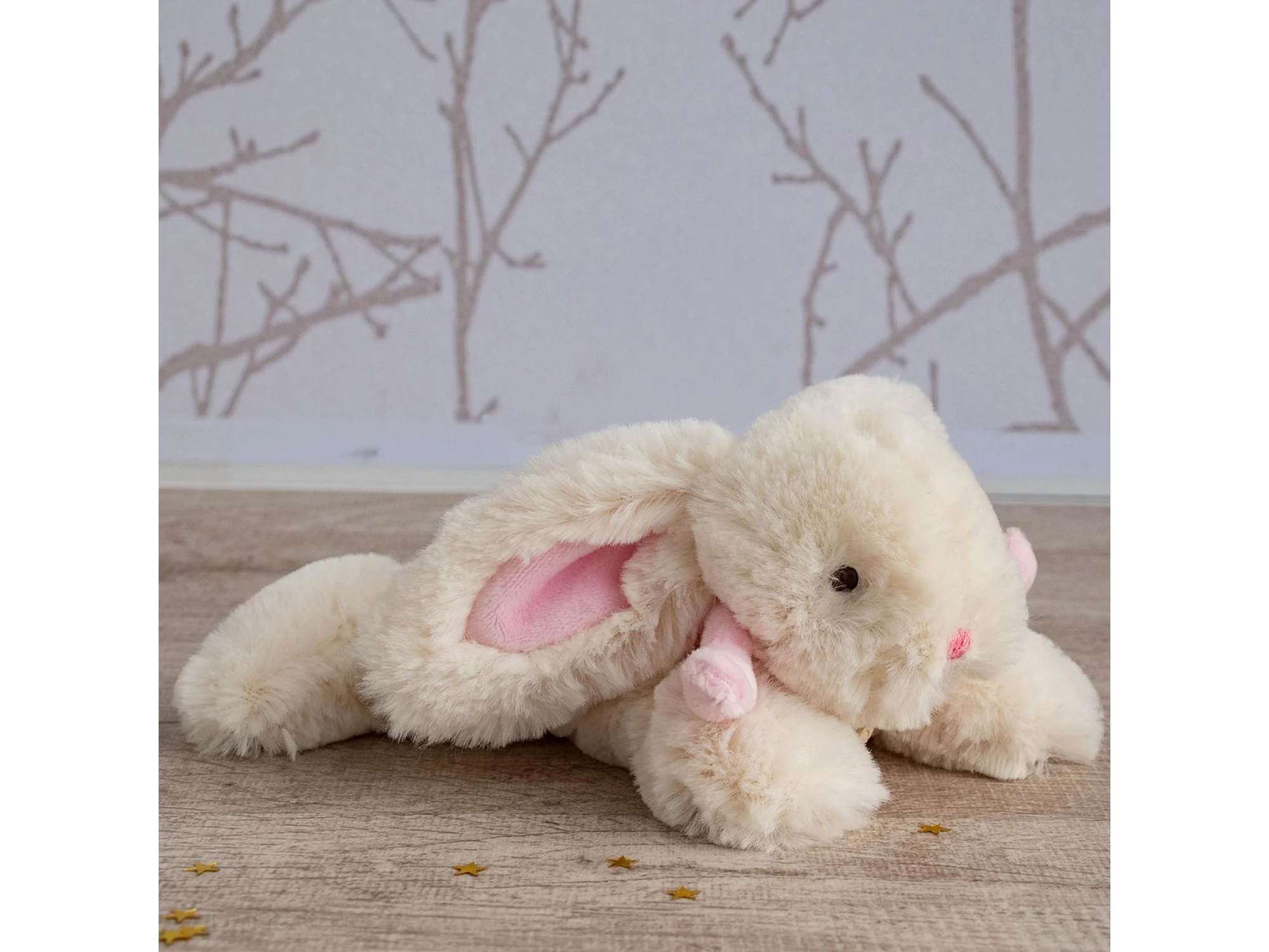 Doudou lapin 20 cm polyester collection LAPIN BONBON blanc/rose