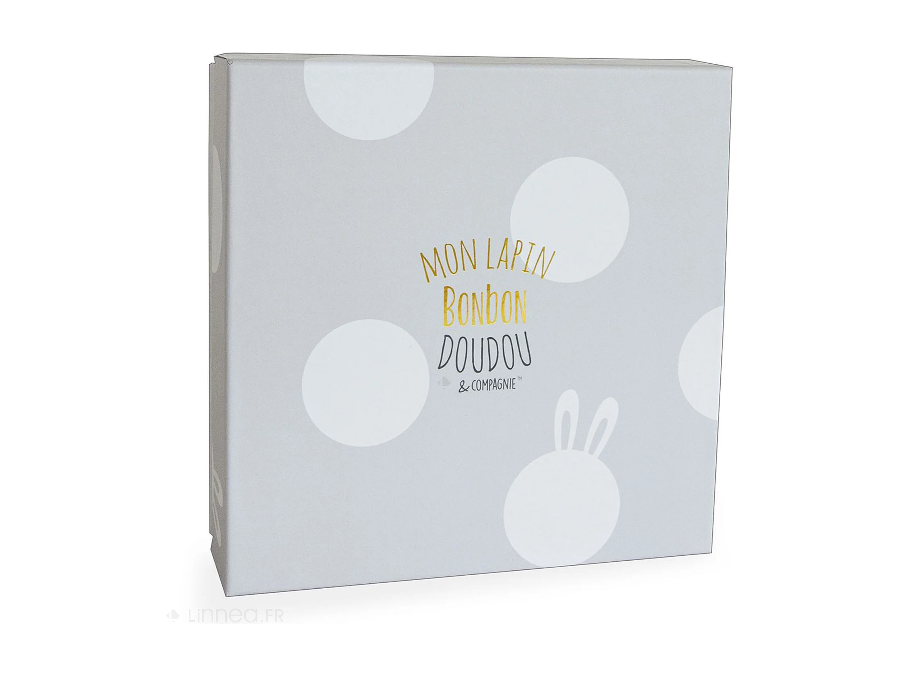 Doudou lapin plat 26 cm polyester collection LAPIN BONBON blanc/beige taupe